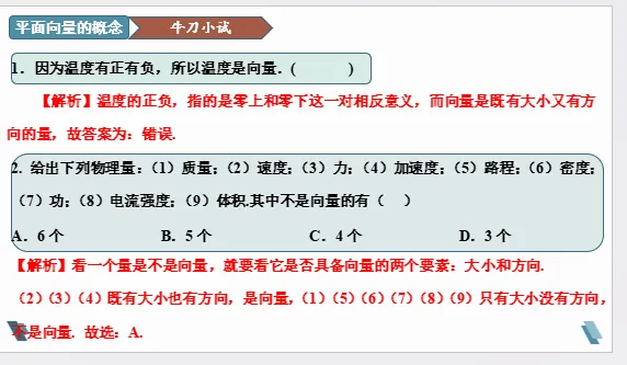 【牛刀小试】1.因为温度有正有负,所以温度是向量.()