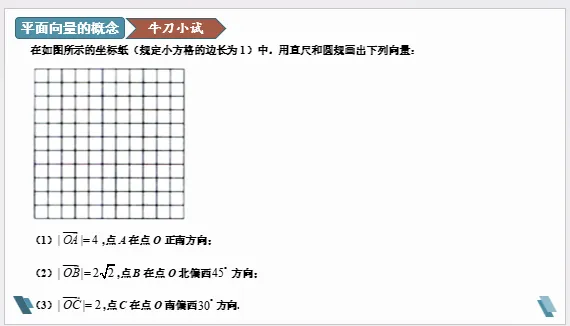 【牛刀小试】在如图所示的坐标纸(规定小方格的边长为1)中,用直尺和圆规画出下列向量: