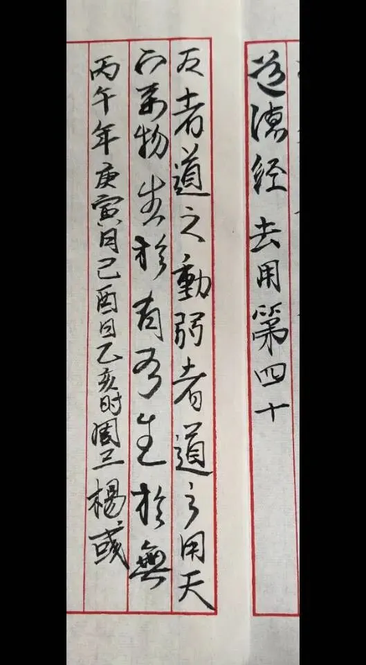 《道德经讲义》黄元吉祖师 去用 第四十章 反者道动 逐句编号 生字注音 汉文翻译标题1. 去用 第四十章 反者道动 翻译:第四十章 反者道之动原文1. 反者道之动。 翻译:循环反复是道的运动。2. 弱者道之用。 翻译:柔弱是道的作用。3. 天下万物生于有。 翻译:天下万物产生于“有”。4. 有生于无。 翻译:“有”产生于“无”。解读1. 大道人人具足,个个圆全,又何待于复哉? 翻译:大道是每个人都具备的,个个都圆满完全,又何必等待恢复呢?2. 不知人自有生以后,气拘物蔽,知诱情生,斯道之为所汩(gǔ)没(mò)者多矣。 翻译:但人们不知道,自从出生以后,被气禀拘束、外物蒙蔽,知识诱惑、情欲产生,这大道就被埋没了很多。3. 苟非内祛(qū)诸缘,外祛(qū)诸扰,凝神调息,绝虑忘机,安得一阳发生、道气复返乎? 翻译:如果不是在内去除各种缘虑,在外去除各种干扰,凝聚精神、调节呼吸,断绝思虑、忘却心机,怎么能使一阳发生、道气复返呢?4. 故曰:“反者道之动。” 翻译:所以说:“反者道之动。”5. 此炼丹之始基也。 翻译:这是炼丹的初始基础。6. 迨(dài)至药已归炉,丹亦粗结,汞(gǒng)铅(qiān)浑一,日夜内观,而金丹产焉。 翻译:等到药物已经归入炉中,丹也粗略凝结,汞和铅混合为一,日夜向内观照,金丹就产生了。7. 自此采取之后,绵绵不绝,了了常存,以谦以下,以辱以柔,就是还丹之妙用。 翻译:从此采取之后,绵绵不绝,明明了了地常存,用谦卑、低下、屈辱、柔弱,这就是还丹的妙用。8. 然非但还丹当如此,自下手以至丹成,无不当冥心内运,专气致柔。 翻译:然而不只是还丹应当如此,从开始下手到丹成,没有不应当潜心向内运化,专一气机达到柔和的。9. 盖丹乃太和一气炼成,修道者当以谦和处之。 翻译:因为丹是由太和一气炼成的,修道者应当用谦和来对待它。10. 苟稍有粗豪,即动凡火,为道害矣。 翻译:如果稍微有粗鲁豪强,就会触动凡火,成为道的危害。11. 故曰:“弱者道之用。” 翻译:所以说:“弱者道之用。”12. 天下万事万物,虽始于有形有象、有物有则,然其始不自有而肇(zhào)也。 翻译:天下万事万物,虽然开始于有形有象、有物有法则,但它们的开始不是从“有”而开始的。13. 圣人当大道之成,虽千变万化,无所不具,而其先必于至虚至无中采之炼之,然后大用流行,浩气充塞于两大。 翻译:圣人在大道成就时,虽然千变万化,无所不备,但它的先前必须在至虚至无中采集修炼,然后大用流行,浩然之气充塞于天地之间。14. 若非自无而炼,焉得弥(mí)纶(lún)天地如此充周靡(mǐ)尽乎? 翻译:如果不是从“无”而修炼,怎么能统摄天地如此充满周遍没有穷尽呢?15. 故曰:“有生于无。” 翻译:所以说:“有生于无。”16. 学人修养之要,始也自无而有,从静笃中炼出微阳来; 翻译:学人修养的关键,开始时从“无”到“有”,从静笃中炼出微阳来;17. 继也自有而无,从蓬勃内复归于恬淡; 翻译:接着从“有”到“无”,从蓬勃中复归于恬淡;18. 其卒也,又自无而有,混混沌沌,人我俱忘,久之自炼出阳神三寸、丈六金身。 翻译:最终,又从“无”到“有”,混混沌沌,人我都忘却,久而久之自然炼出阳神三寸、丈六金身。19. 可见有有无无,原回环不已,迭(dié)运靡(mǐ)穷。 翻译:可见“有”和“无”,原本回环不止,交替运行没有穷尽。20. 学者必照此行持,方无差忒(chà tè)。 翻译:学者必须按照这样修行,才没有差错。21. 此言金丹大道非有他也,只是真气流行充周一身,其静也如渊之沉,其动也如潮之涌。 翻译:这里说金丹大道没有别的,只是真气流行充满全身,它静止时如深渊般沉静,它运动时如潮水般涌动。22. 惟清修之子冥心内照,自考自证,方能会之,非言语所能罄(qìng)也。 翻译:只有清修的人潜心向内观照,自己考察自己验证,才能领会,不是言语所能完全表达的。23. 人能明得动机是我生生之本,彼长生不老之丹岂外是乎? 翻译:人能够明白动机是我生生不息的根本,那长生不老的丹难道外在于此吗?24. 况人人共有之物,无异同、无欠缺,只为身动而精不生,心动而气不宁,于是乎生老病死苦辗转不休,轮回不已。 翻译:况且这是人人共有的东西,没有差异、没有欠缺,只因为身体动而精不生,心念动而气不宁,于是生老病死苦辗转不休,轮回不已。25. 若欲脱诸一切,非先致养于静,万不能取机于动、返我生初元气。 翻译:如果想要脱离这一切,非先致力于静养,万万不能把握动机、返回我生命最初的元气。26. 但此个动机,其势至微,其气至嫩,稍不小心,霎时而生癸(guǐ)水、变经流,为后天形质之私,不可用矣。 翻译:但这个动机,它的势态非常微小,它的气机非常柔嫩,稍不小心,霎时间就会产生癸水、变成经流,成为后天形质的私物,不可用了。27. 故曰:“见之不可用,用之不可见。” 翻译:所以说:“见之不可用,用之不可见。”28. 由此一动之后,采不失时,则长生有本,大丹有根。 翻译:由此一动之后,采取不失时机,那么长生就有根本,大丹就有根基。29. 如执所有而力行之,笃(dǔ)所好而固守之,虽得药有时,成丹可俟(sì),无如冲气至和,而因此后之采取不善、烹炼不良,一团太和之气遂被躁暴凡火伤之; 翻译:如果执着于所有而努力实行,笃信所好而固守,虽然有时得到药物,成丹可以期待,无奈冲气至和,而因此后的采取不善、烹炼不良,一团太和之气就被躁暴的凡火所伤害;30. 道本至阳至刚,必须忍辱柔和,始克(kè)养成丹道,太上所以