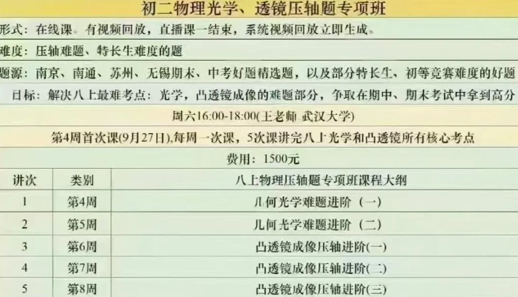 25秋最新初二物理光学透镜压轴题专项班,包含完整课程视频+讲义,5次课讲完八上光学和凸透镜所有核心考点,南京、南通、苏州、无锡期末、中考好题精选,解决八上最难考点:光学、凸透镜成像难题。内容包括:
