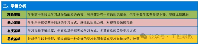 根据教学环节适配教法,概念课用情境体验、实验探究、小组研讨法,运算课取任务驱动、讲授示范、比较归纳法,应用课采案例剖析、项目实践、启发引导法;学法倡导自主研习、合作交流、实践反思、类比迁移有机协同,构建高效课堂生态。
