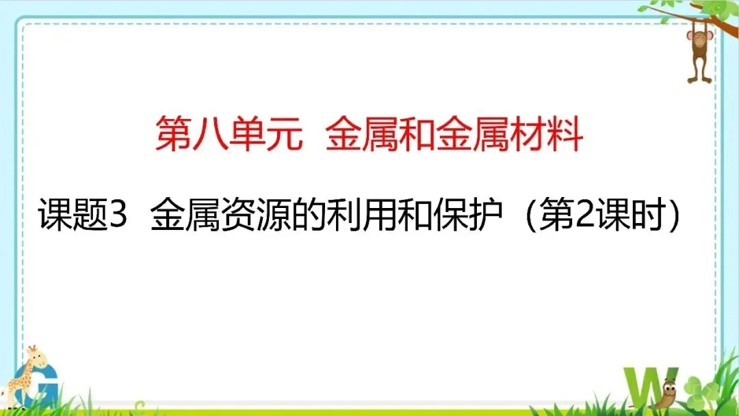 【希沃课件】人教版九年级化学第8单元课题3金属资源的利用和保护(第2课时)教学欣赏!