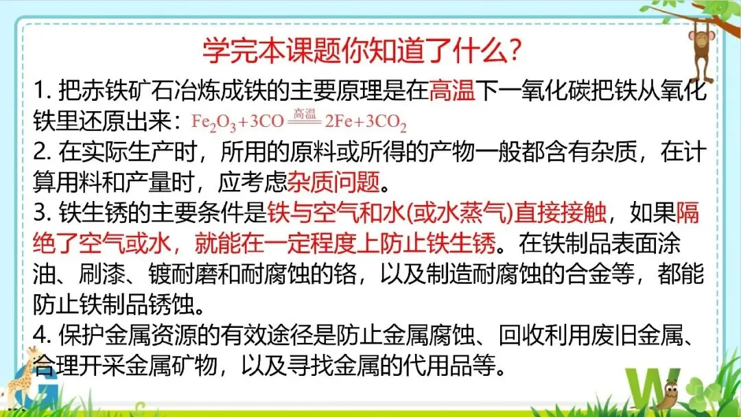 >【希沃课件】人教版九年级化学第8单元课题3金属资源的利用和保护(第2课时)教学欣赏!