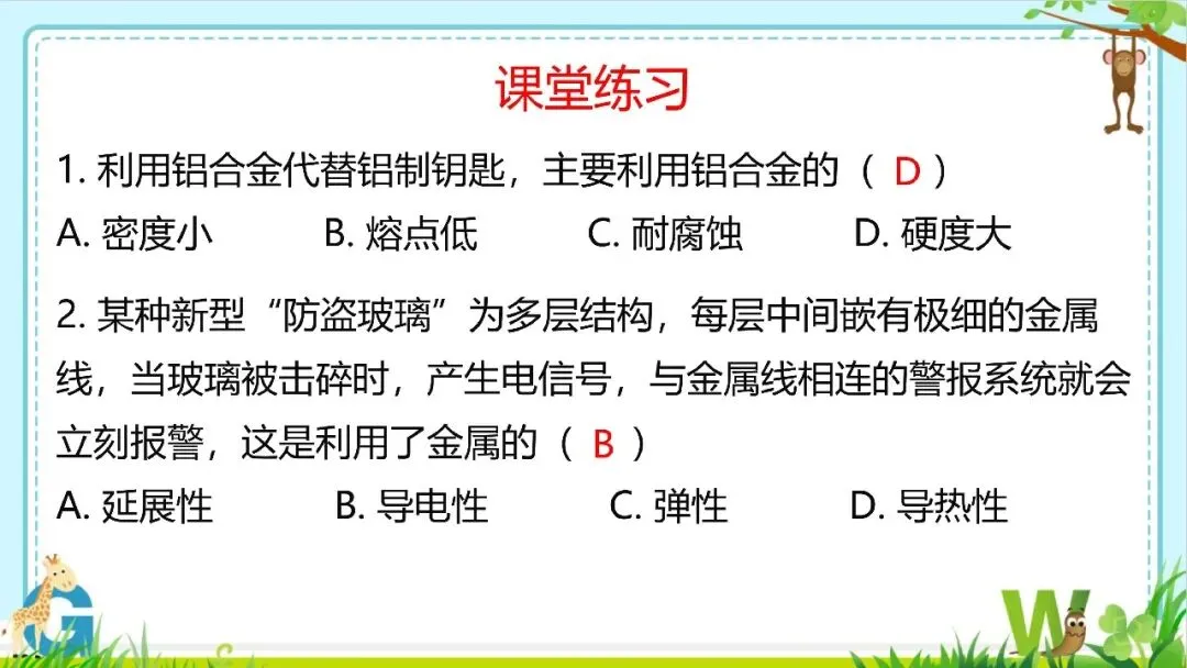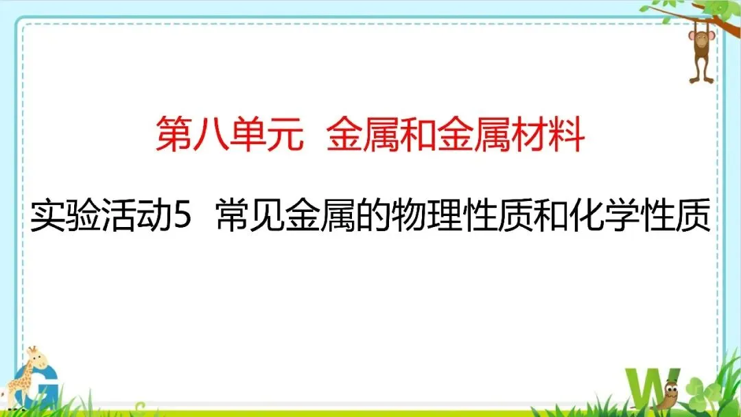 >【希沃课件】人教版九年级化学第8单元实验活动5常见金属的物理性质和化学性质教学欣赏!