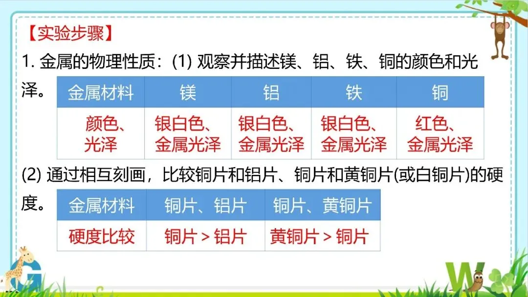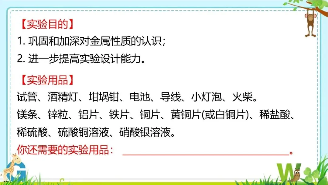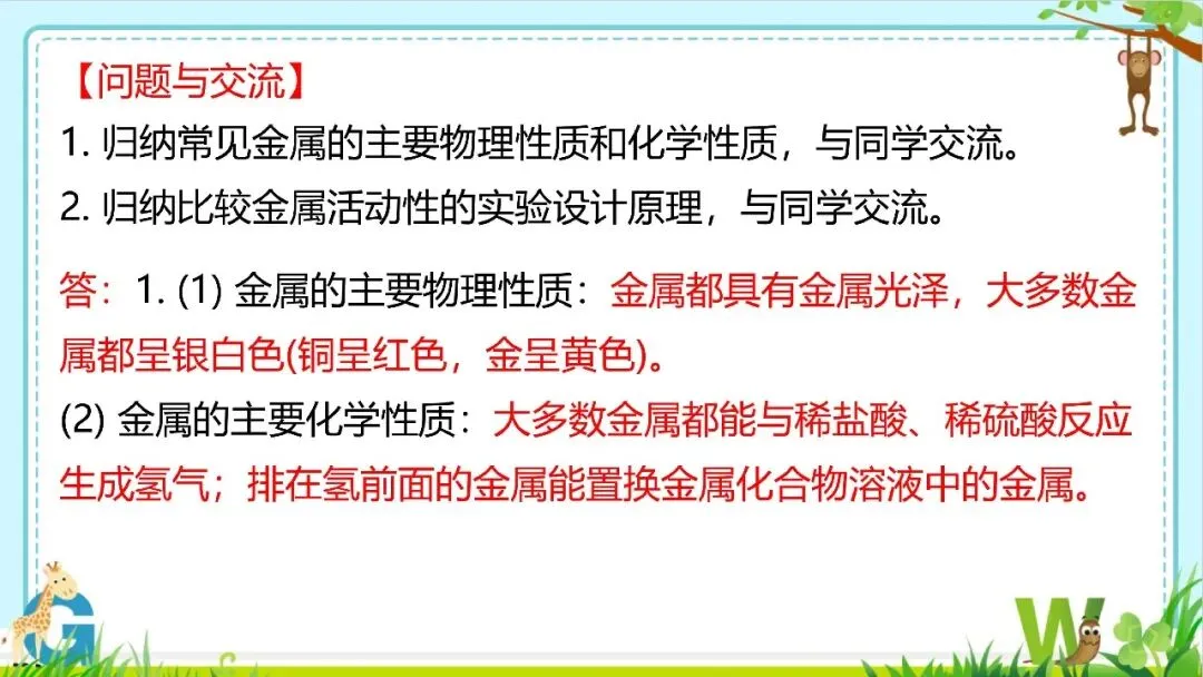 【希沃课件】人教版九年级化学第8单元实验活动5常见金属的物理性质和化学性质教学欣赏!