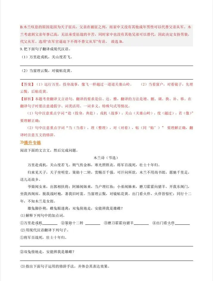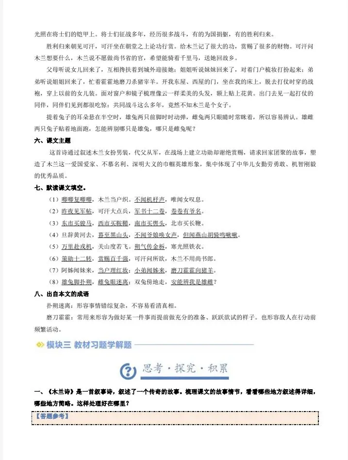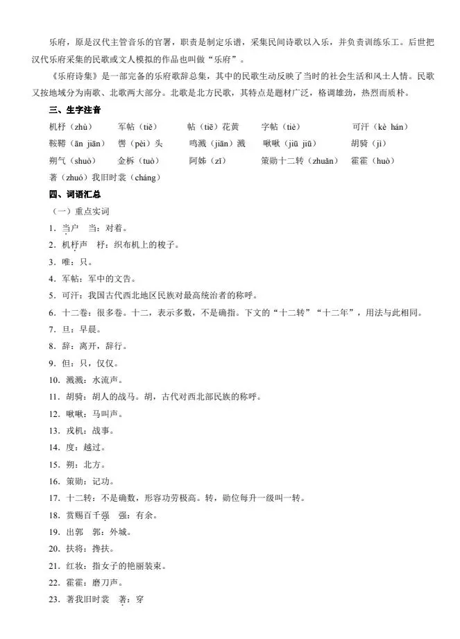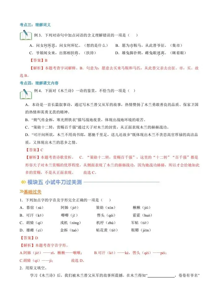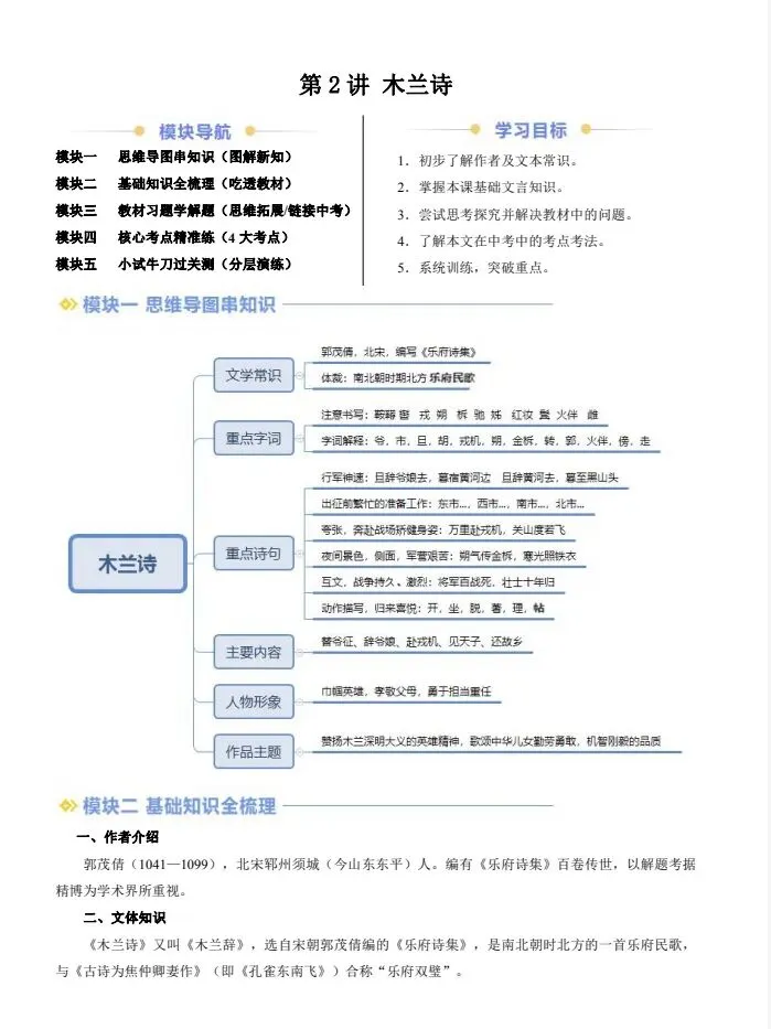2026七下语文|《木兰诗》寒假预习讲义+考点全整理,免费领可打印