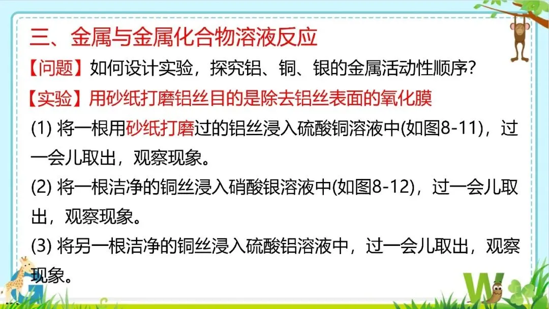 【希沃课件】人教版九年级化学第8单元实验活动5常见金属的物理性质和化学性质教学欣赏!