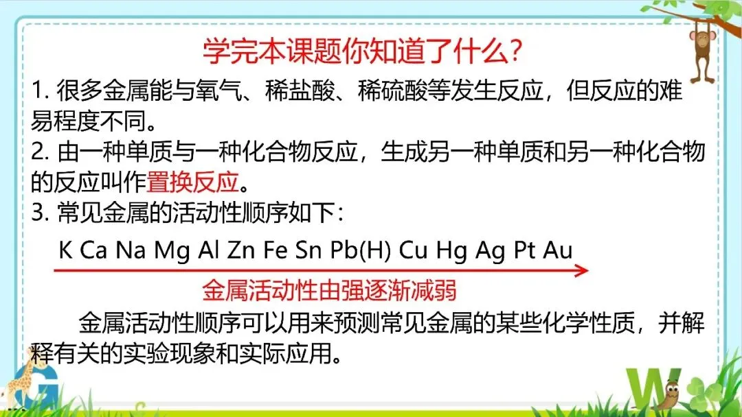 【希沃课件】人教版九年级化学第8单元课题2金属的化学性质(第2课时)教学欣赏!