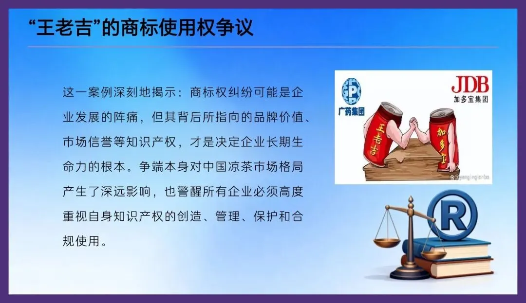 这一案例深刻地揭示:商标权纠纷可能是企业发展的阵痛,但其背后所指向的品牌价值、市场信誉等知识产权,才是决定企业长期生命力的根本。争端本身对中国凉茶市场格局产生了深远影响,也警醒所有企业必须高度重视自身知识产权的创造、管理、保护和合规使用。