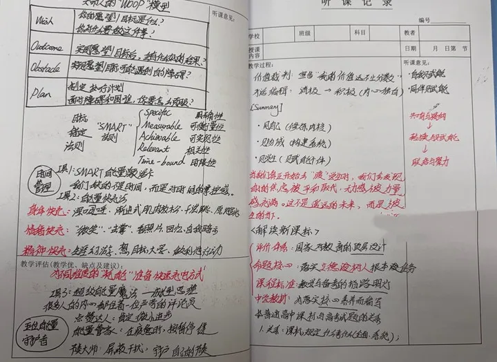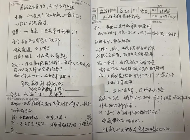 3、参评的备课、听课笔记必须为手写笔记,字迹要工整,内容要正确,特色要鲜明,无知识性错误,备课内容无抄袭现象,有二次备课痕迹,有教学反思。纯打印笔记不得参评。