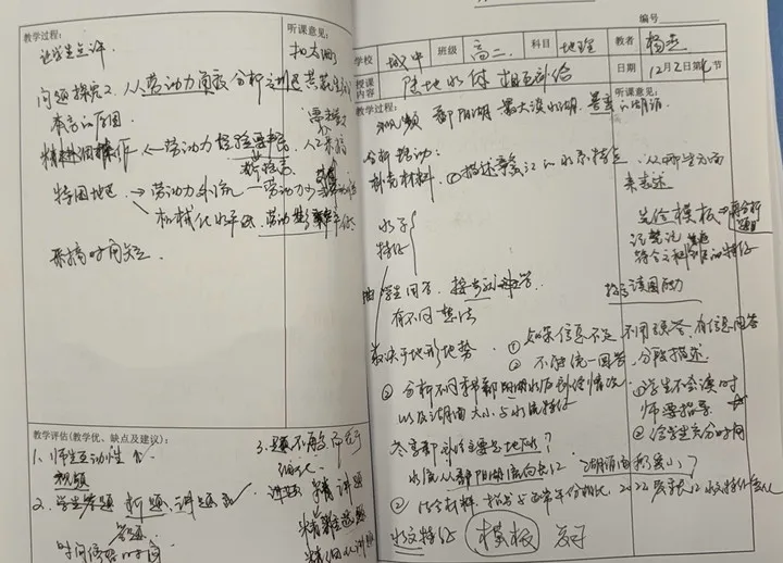 2、备课、听课笔记格式规范,按课时书写,时间标注明确,各教学环节齐全,能体现教学全过程,对课堂教学有很好的指导作用,参评的备课笔记中课时教案要有一定量的课后反思。