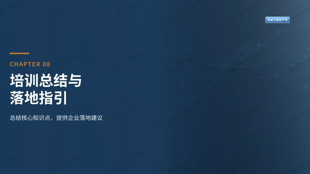 • 培训测试题(巩固知识点)——涵盖基础知识点、实操难点,用于培训后测试,检验培训效果,帮助学员巩固所学内容。