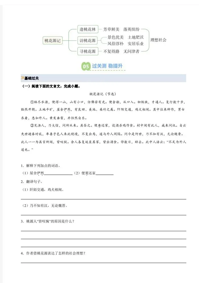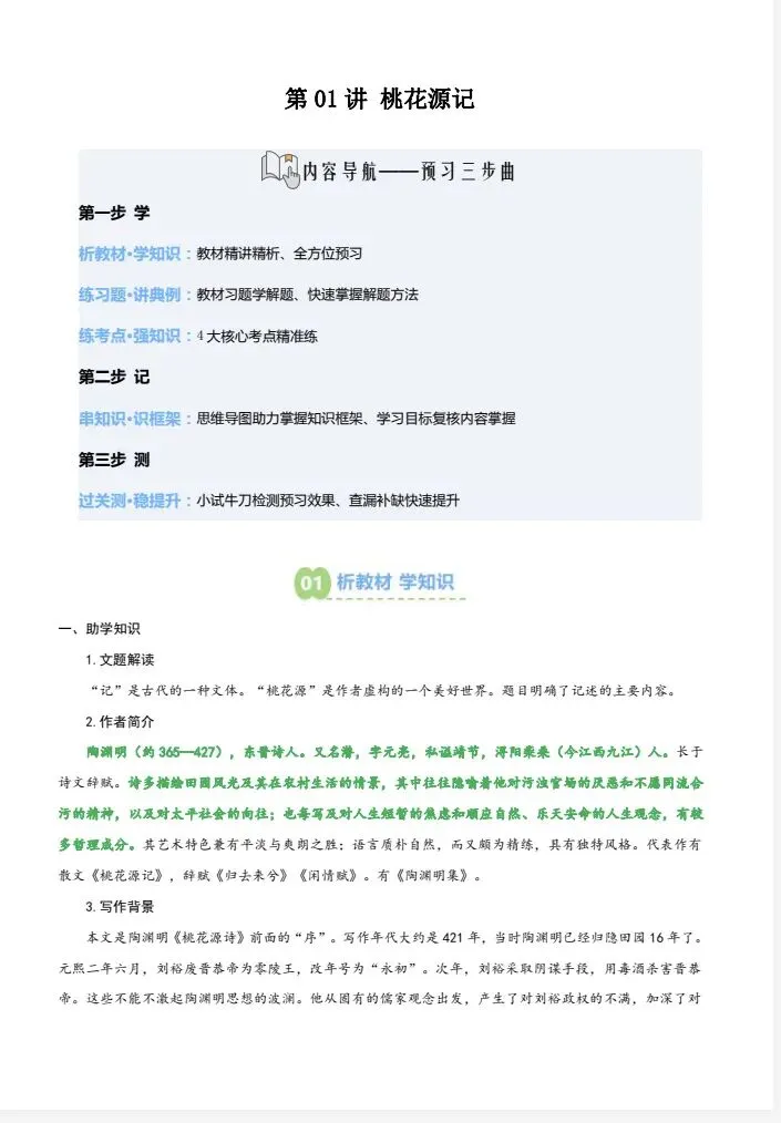 2026八下语文|《桃花源记》寒假预习讲义+考点全整理,免费领可打印