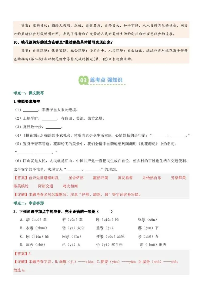 2026八下语文寒假预习|《桃花源记》讲义+考点全整理【学生版+教师版】免费领可下载打印