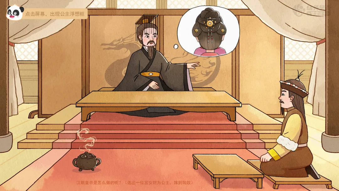 ——很久以前,汉朝和匈奴之间经常爆发战争,百姓们生活得很不幸福。匈奴首领来到汉朝,想要做什么?