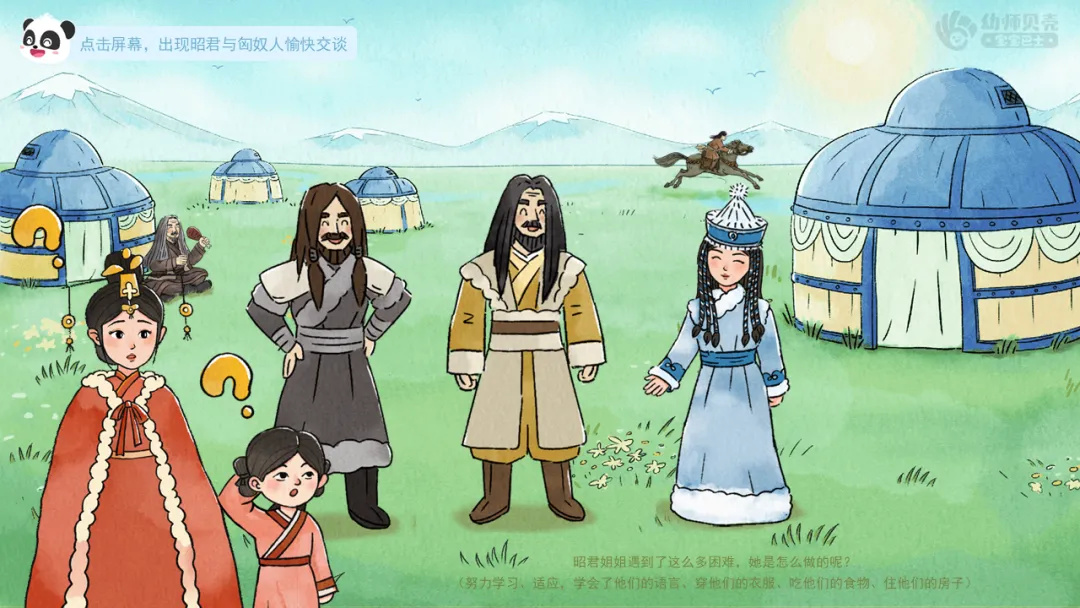 ——不仅语言不同,吃、穿、住、行也和以前很不一样,你们觉得这时候昭君姐姐会是什么心情呢?接下来她会怎么做呢?