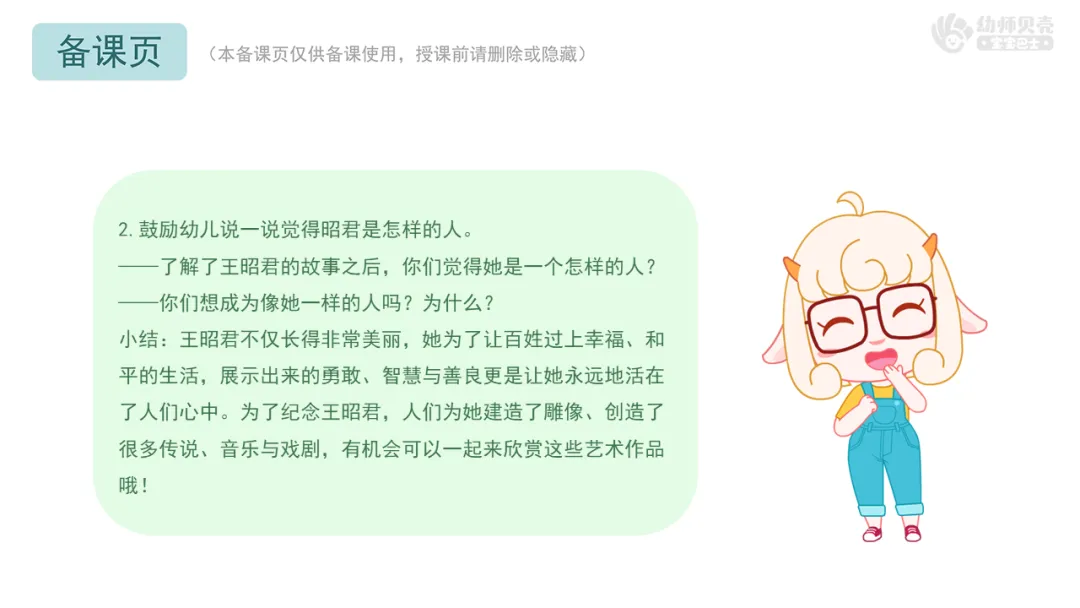 2.鼓励幼儿说一说觉得昭君是怎样的人。