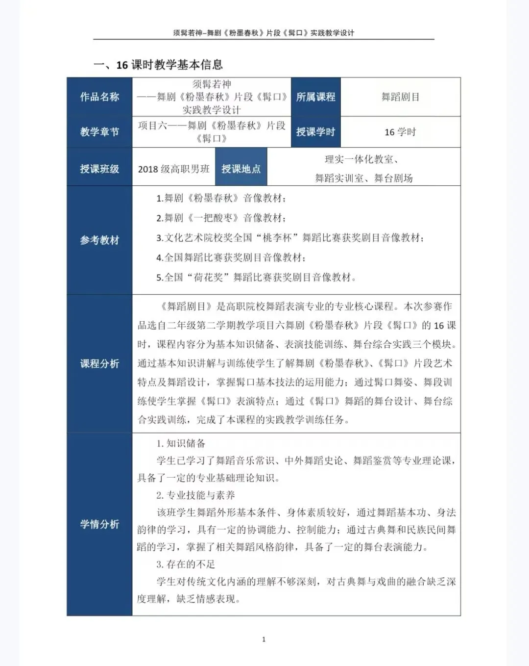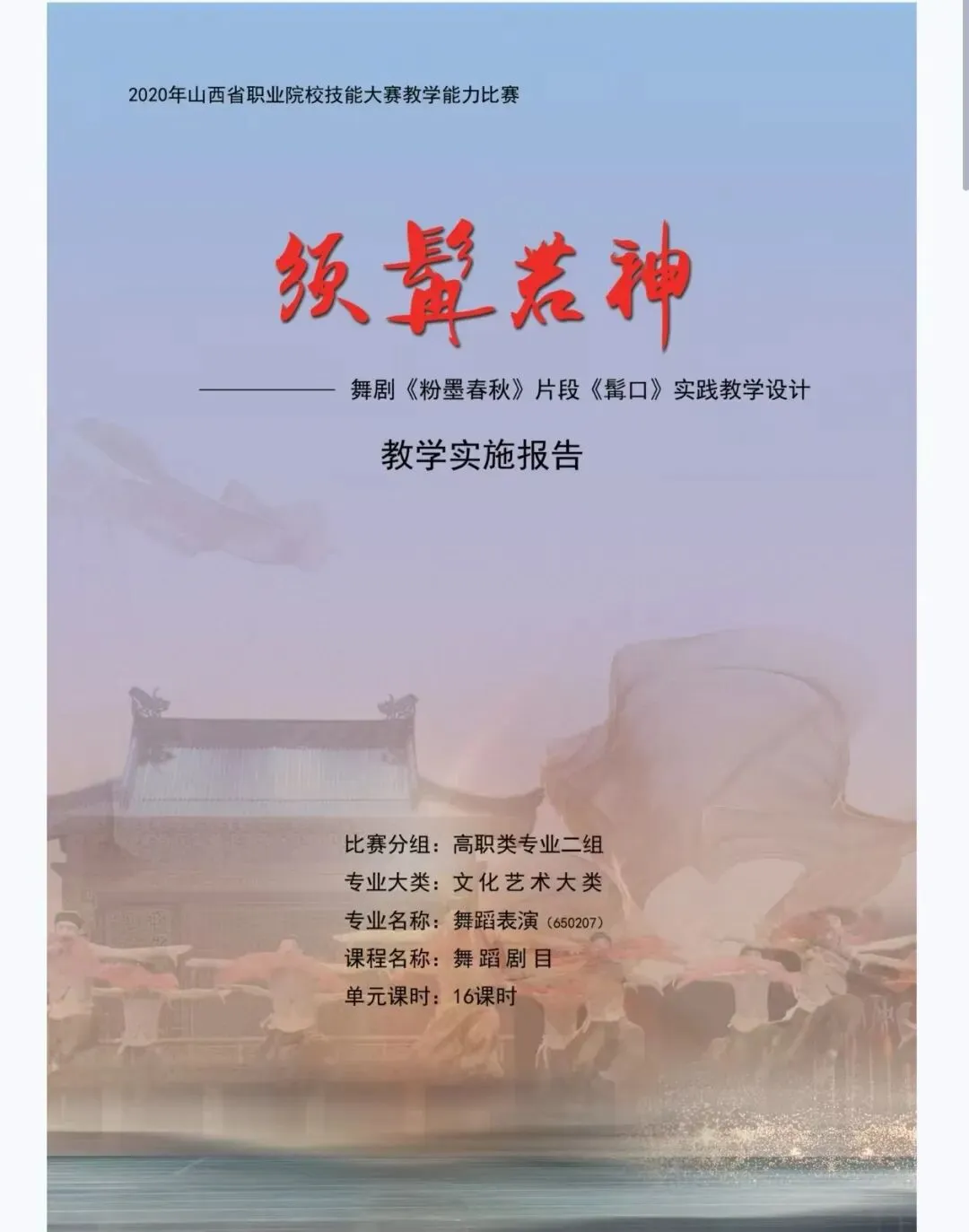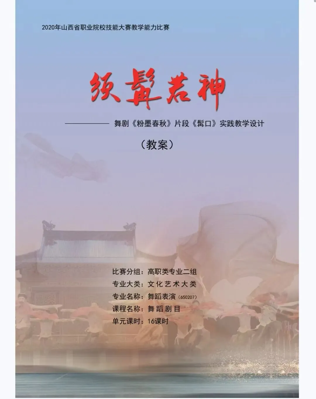 当前位置:首页>教案>舞蹈专业丨教学能力大赛教案和实施报告丨职业院校技能大赛教学能力比赛省二《粉墨春秋》文化艺术大类专业丨舞蹈表演丨舞蹈剧目