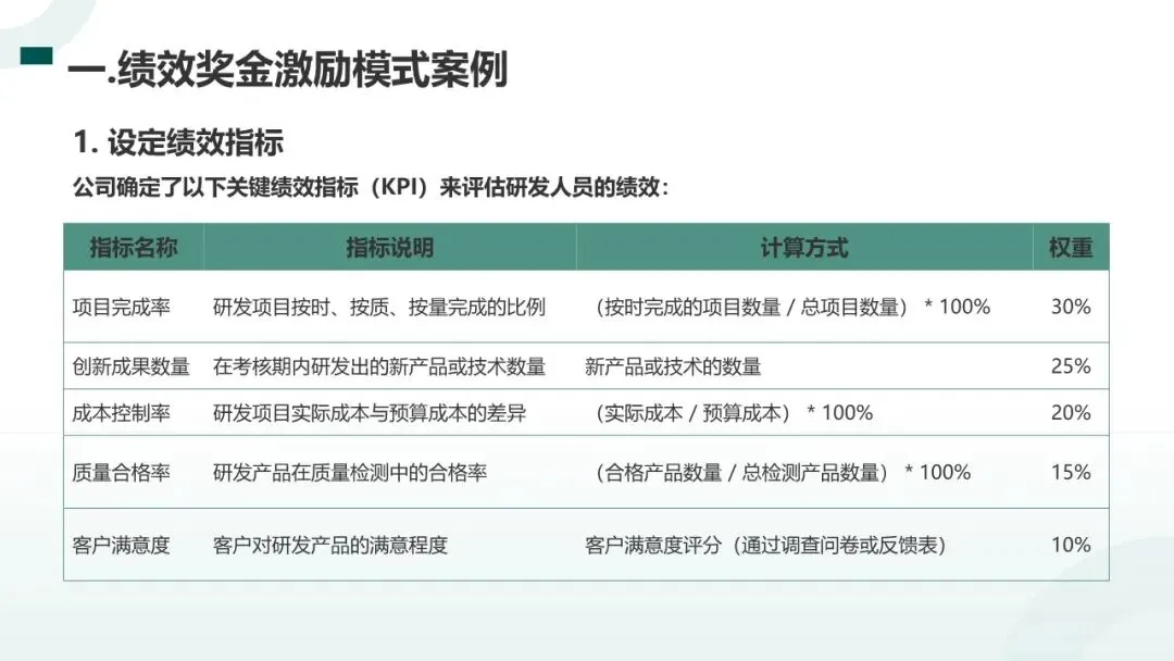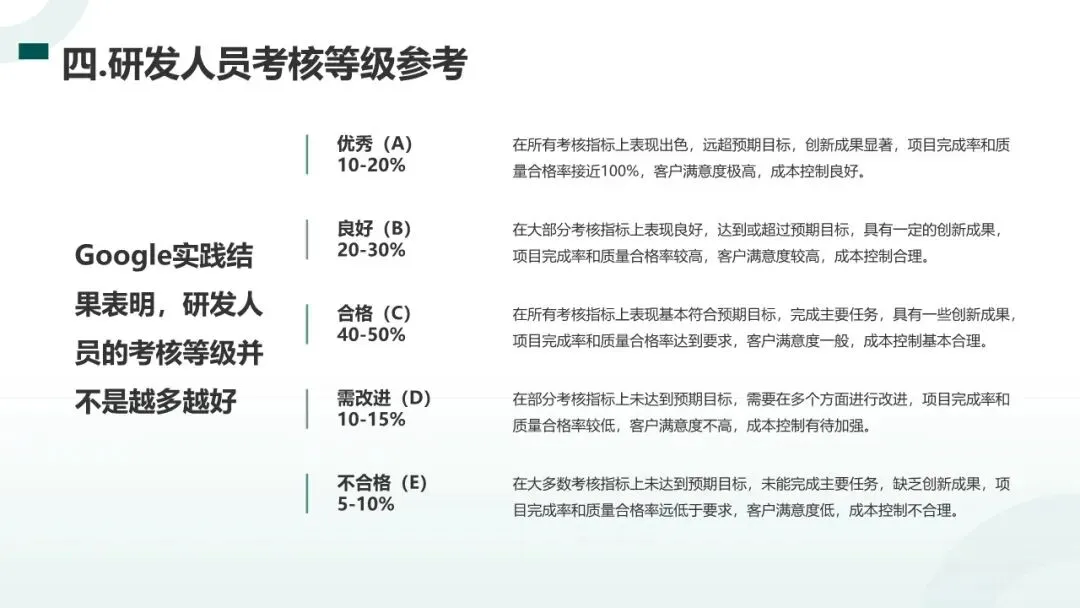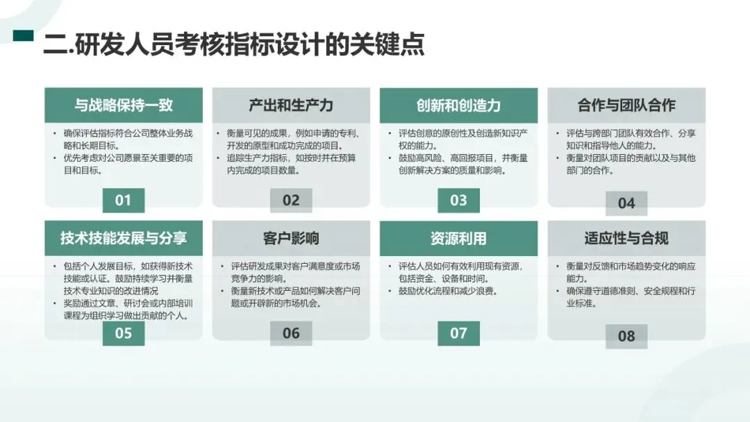 公平公正原则:以“价值贡献”为核心衡量标准,量化研发成果与绩效挂钩,避免“平均主义”,让付出与回报匹配。