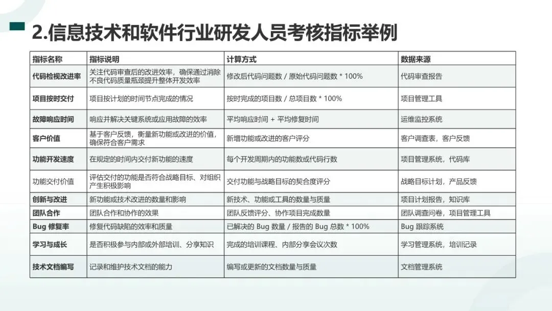 绩效奖金:按月/季度发放,基于个人绩效(如任务完成率、代码质量、bug修复效率)、团队绩效(如项目进度、交付质量)综合评定,指标量化可落地(如代码复用率≥30%、核心模块交付准时率100%)。