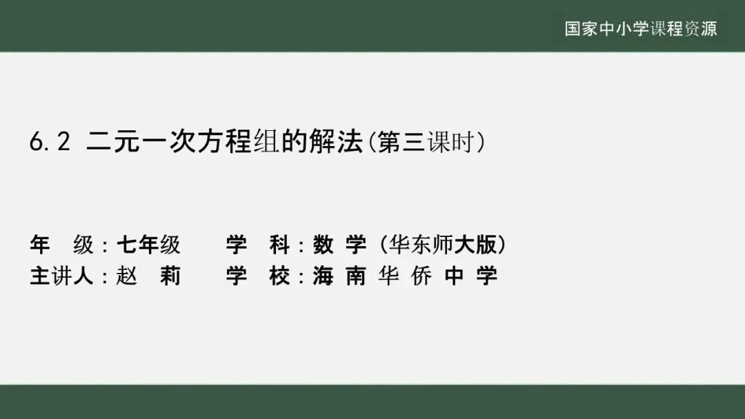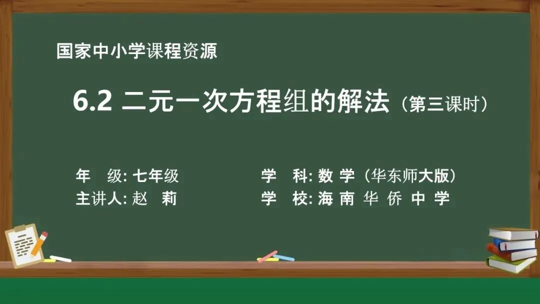 当前位置:首页>课件>【教学课件】(新教材)华师大版初中数学七下《6.2 二元一次方程组的解法》(第三课时)