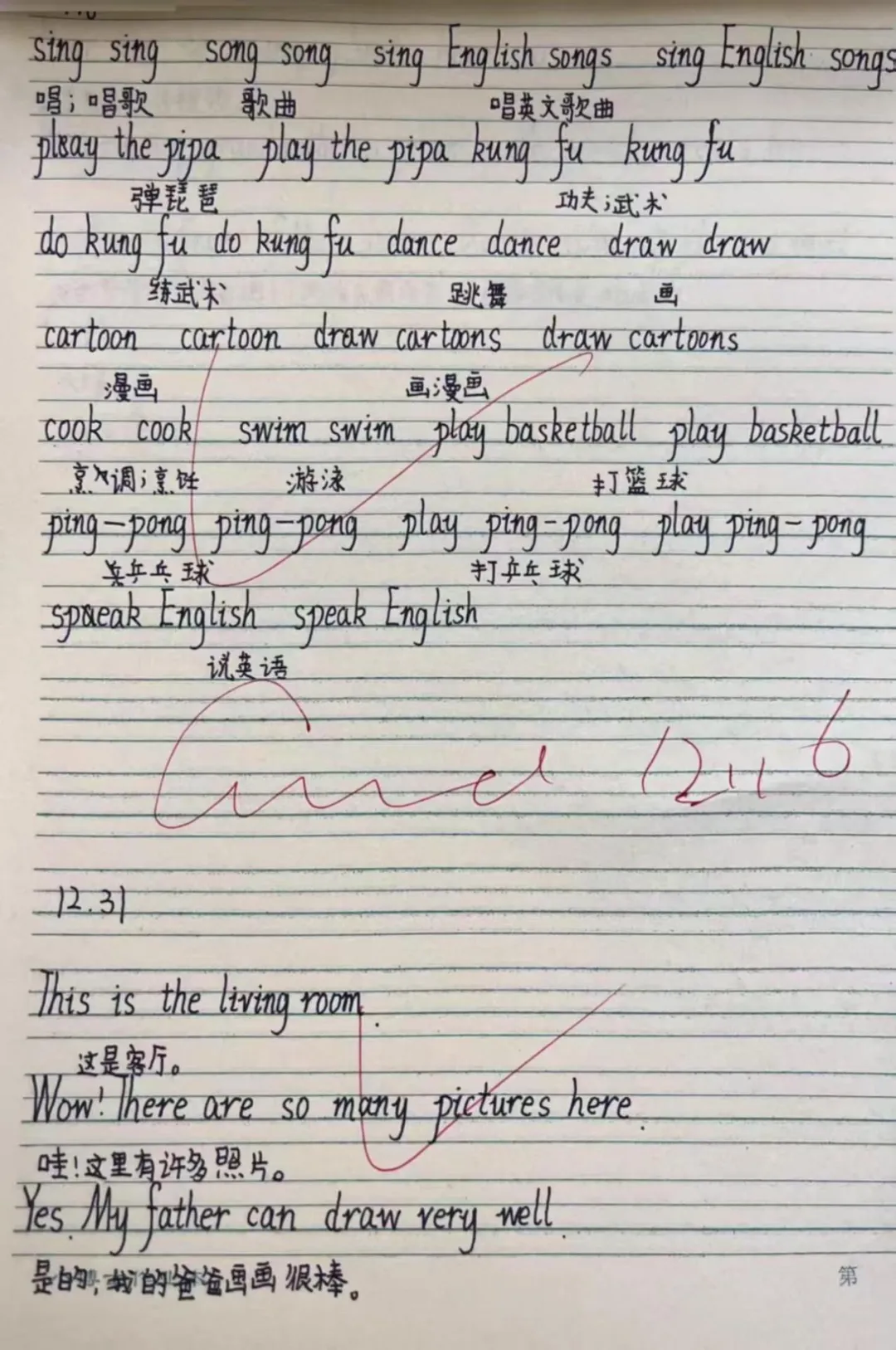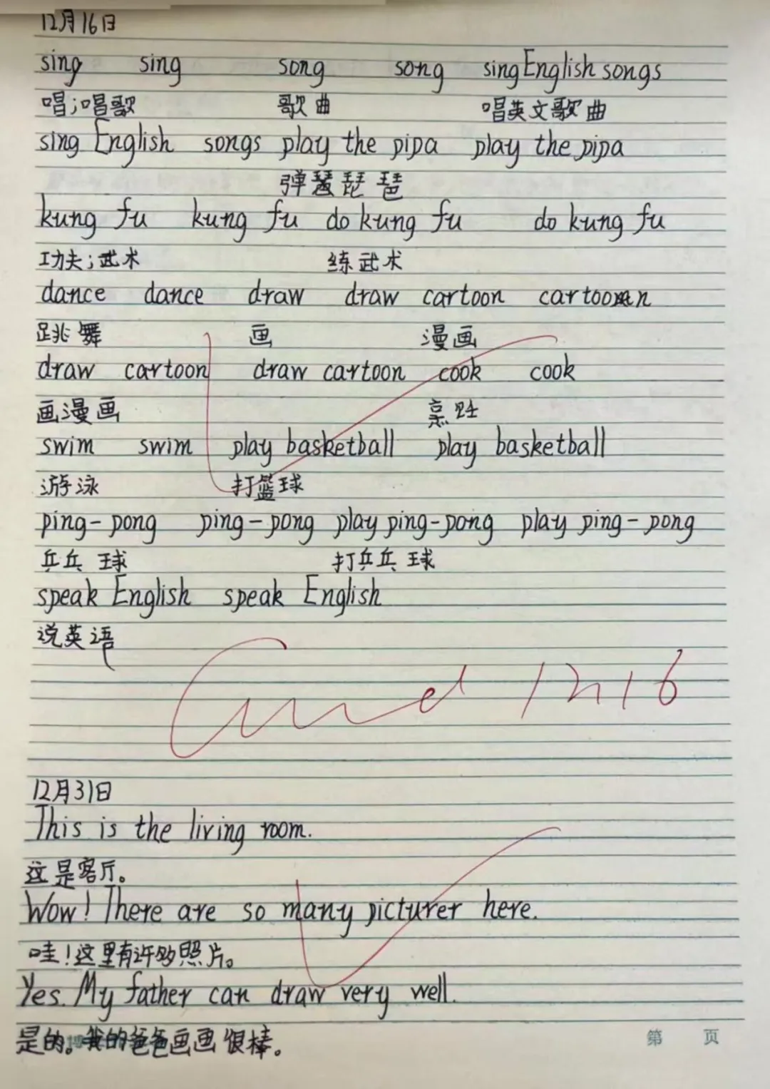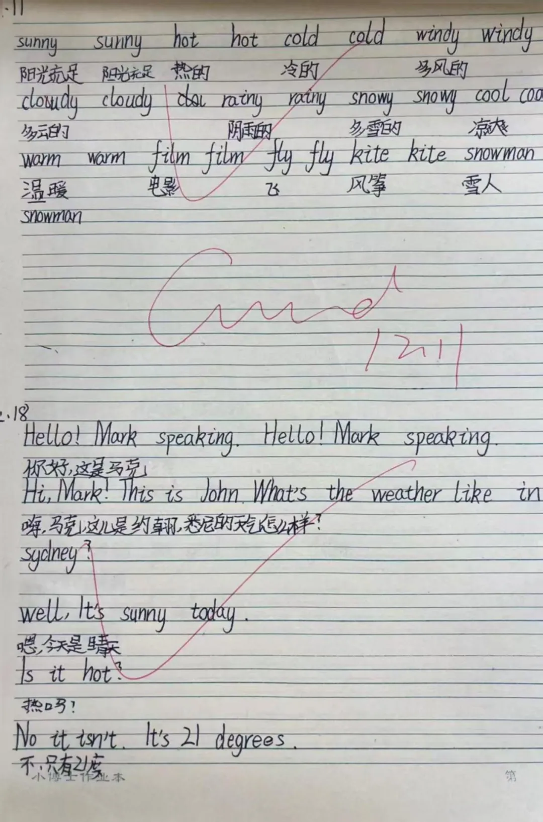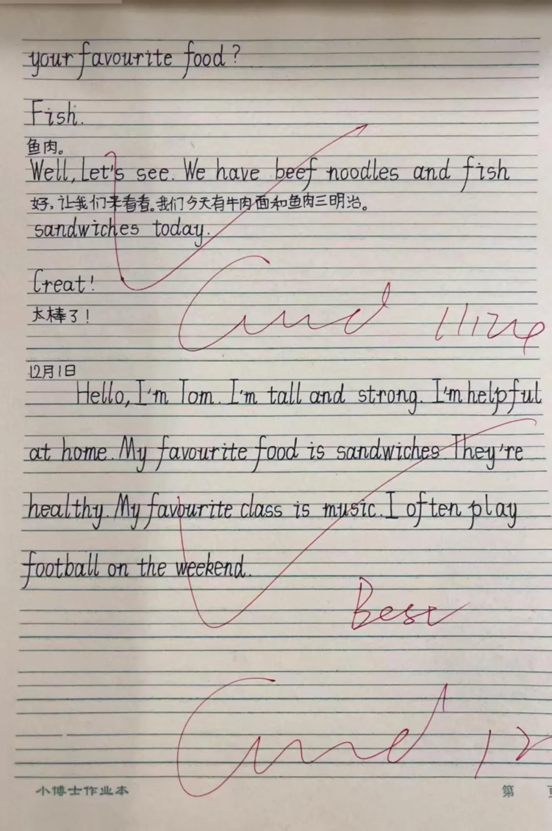 在英语的语言国度中,每一份作业都是语言交流的桥梁。学生作业书写规范、卷面美观,教师在审阅中注重激发学生的国际语言交流热情,让英语学习具有趣味性。