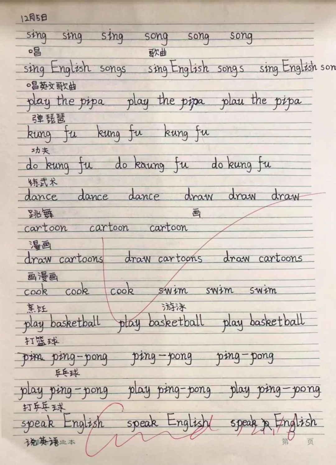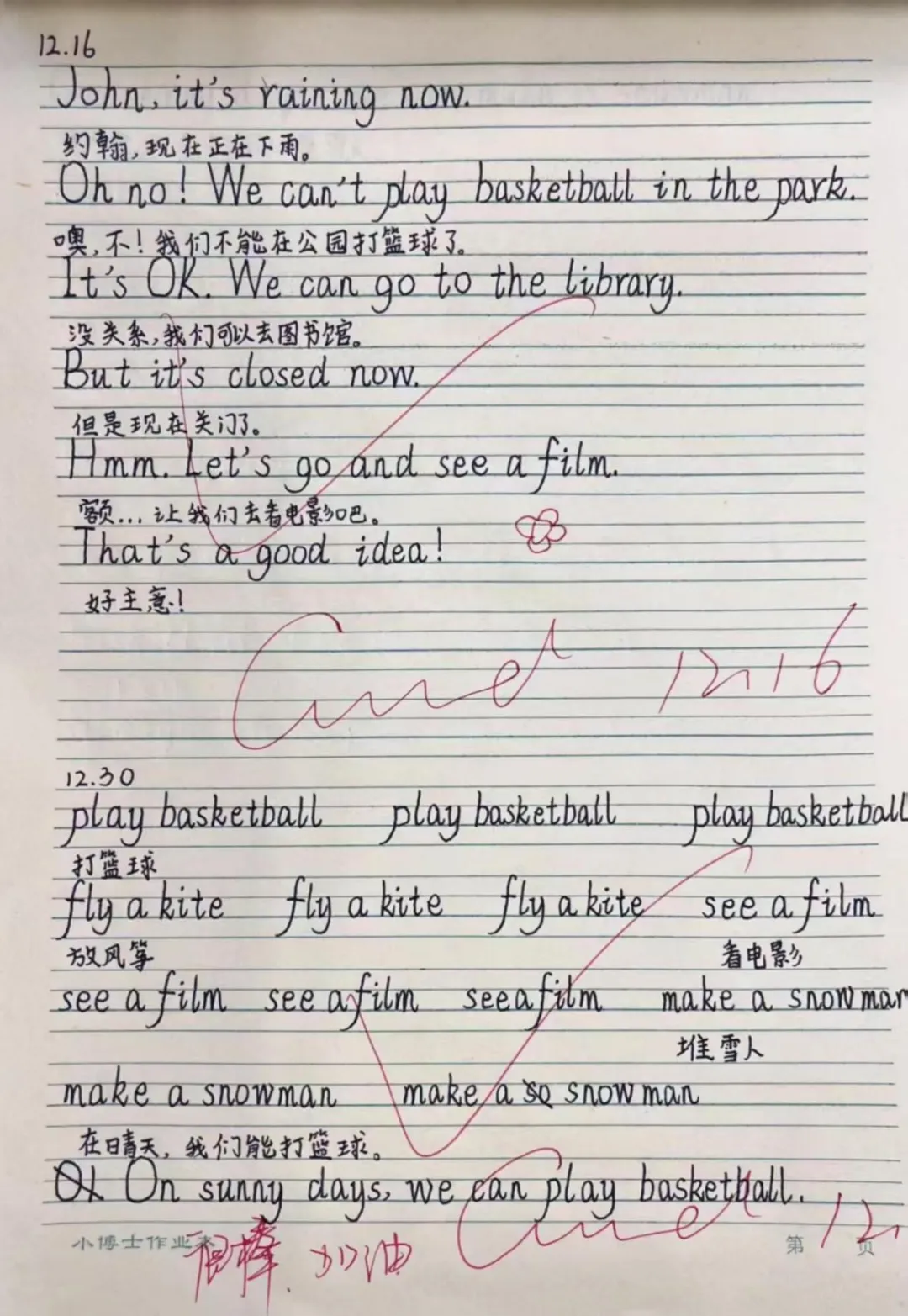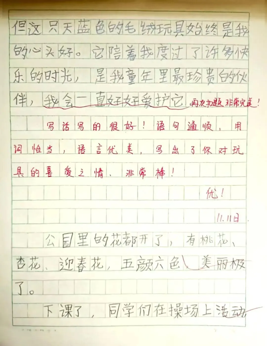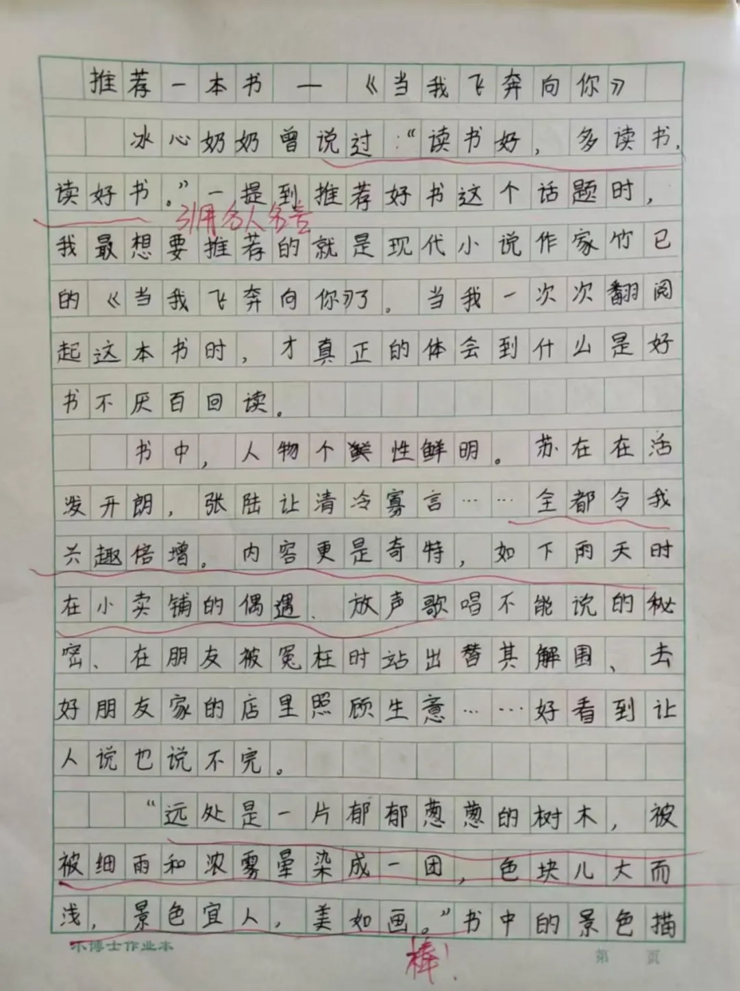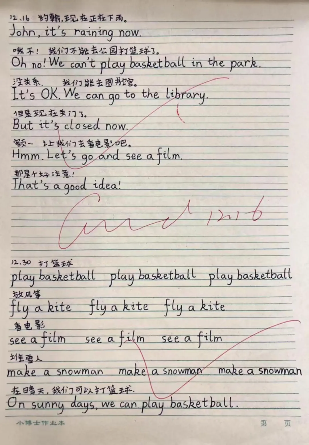 在英语的语言国度中,每一份作业都是语言交流的桥梁。学生作业书写规范、卷面美观,教师在审阅中注重激发学生的国际语言交流热情,让英语学习具有趣味性。