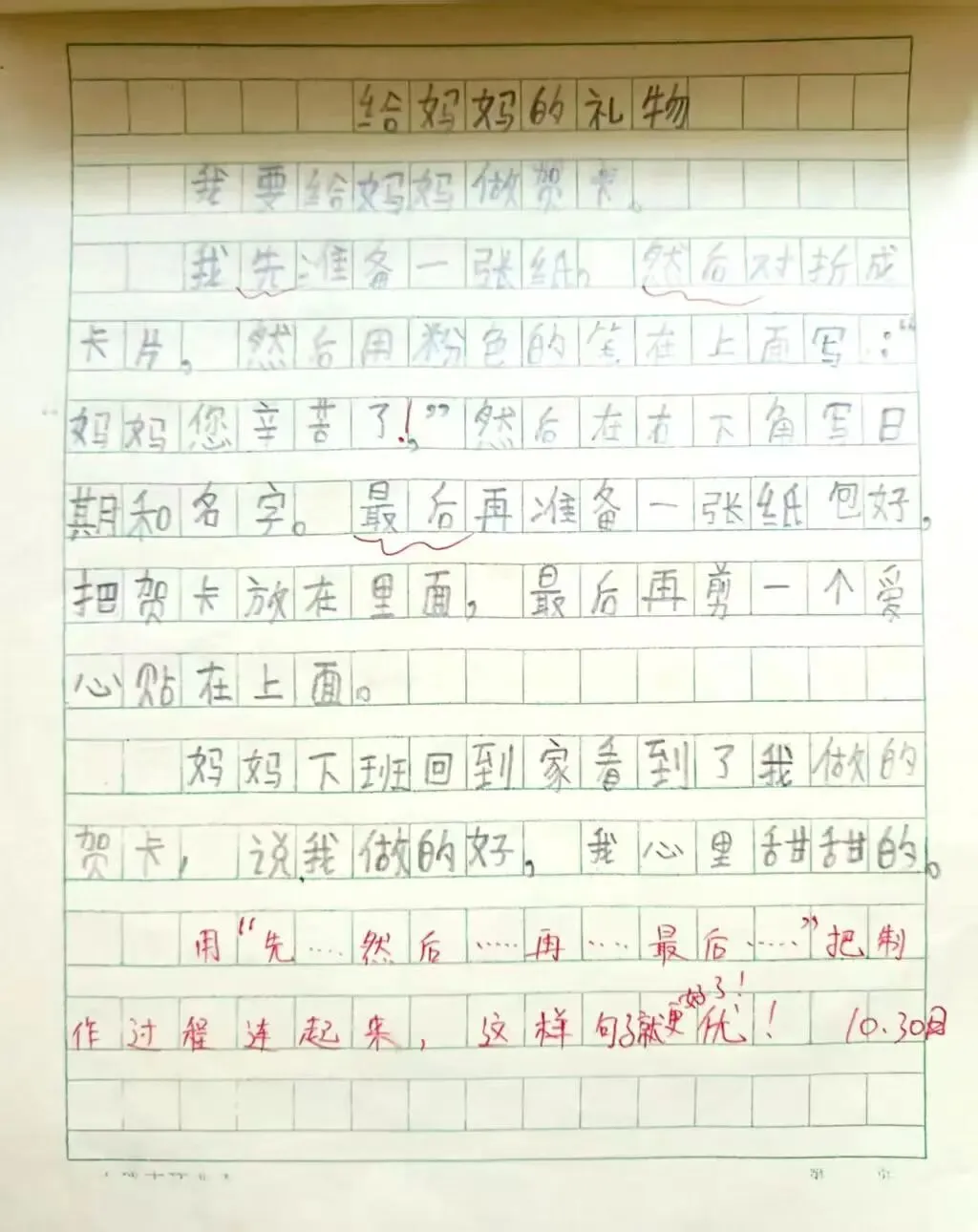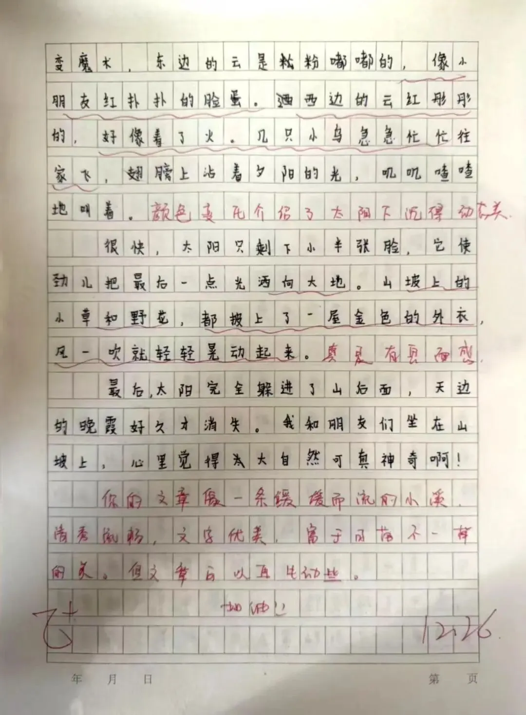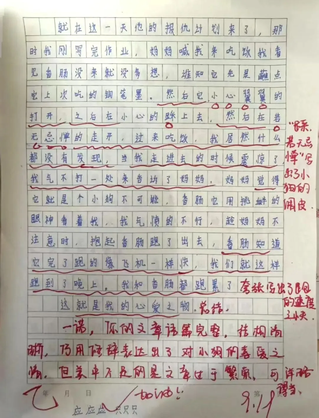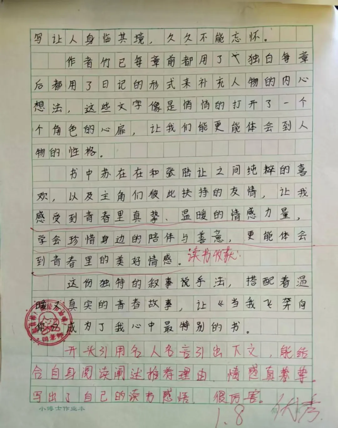 在英语的语言国度中,每一份作业都是语言交流的桥梁。学生作业书写规范、卷面美观,教师在审阅中注重激发学生的国际语言交流热情,让英语学习具有趣味性。