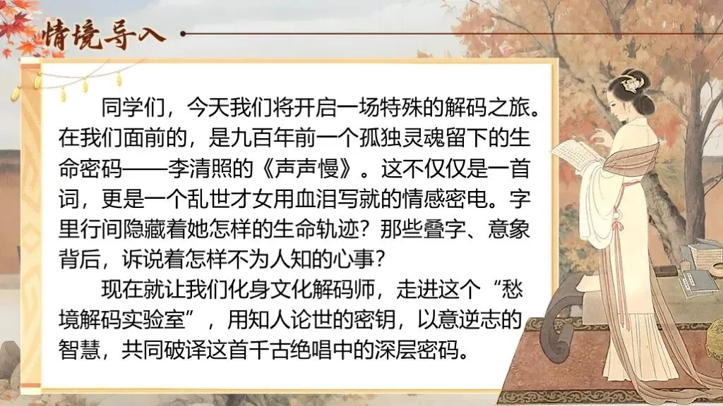 【中职语文基础模块下】| 《声声慢》:课件+教学设计