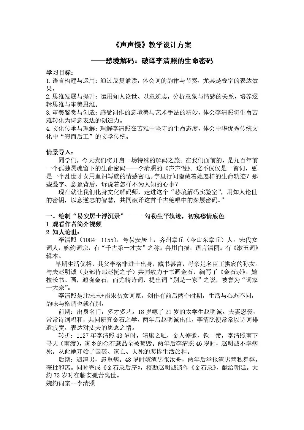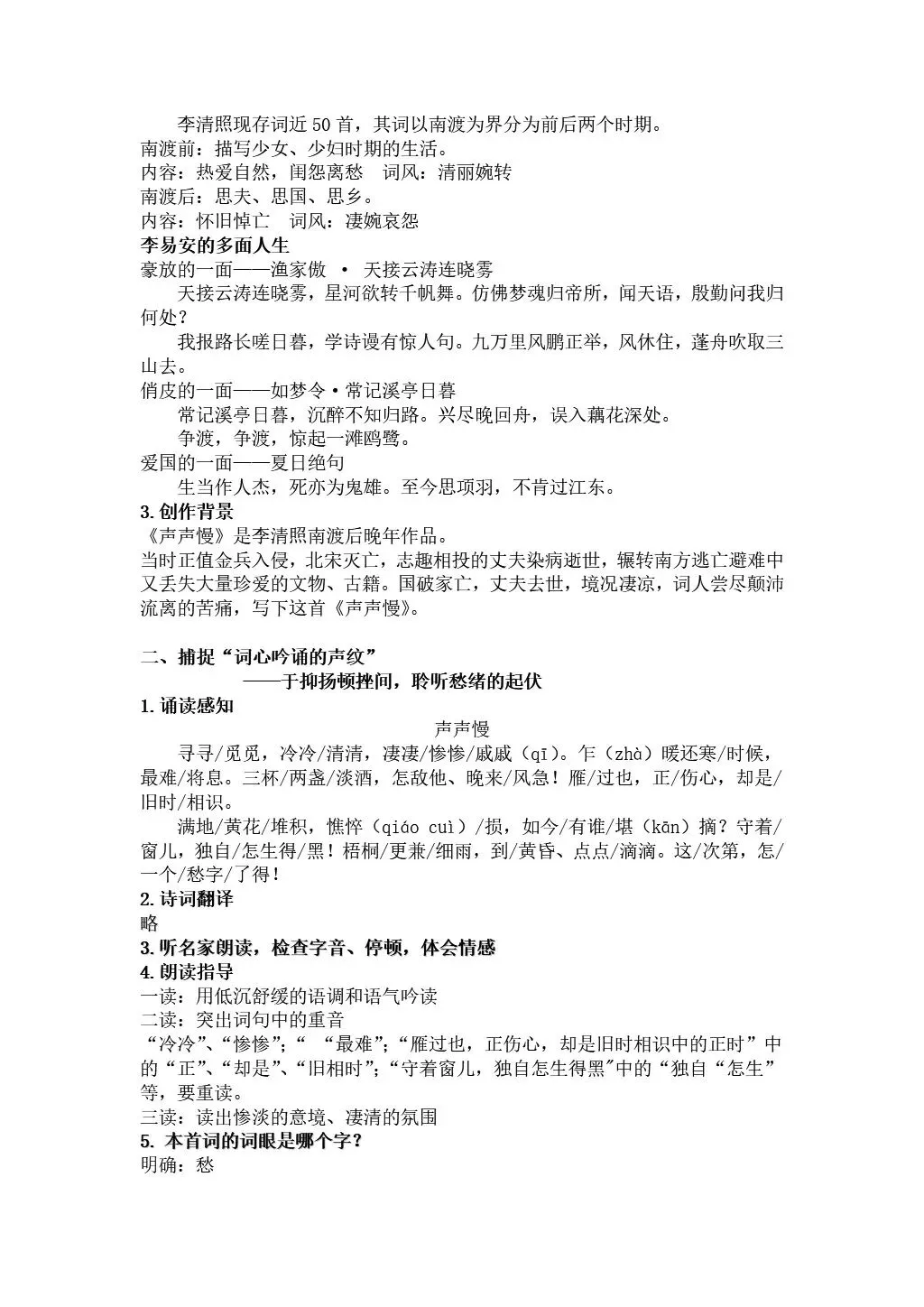 >【松鼠语文系列必修上】|《声声慢》:课件+教学设计