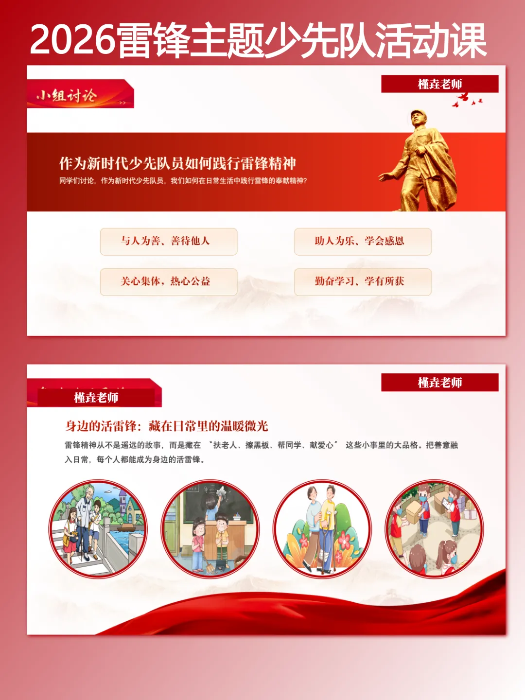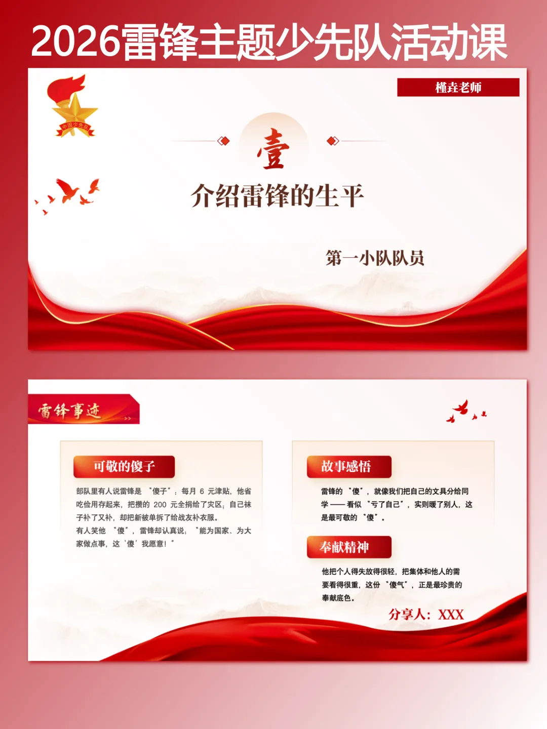 >2026年雷锋主题队会课件教案逐字稿|学雷锋精神,扬文明风尚【完整版】