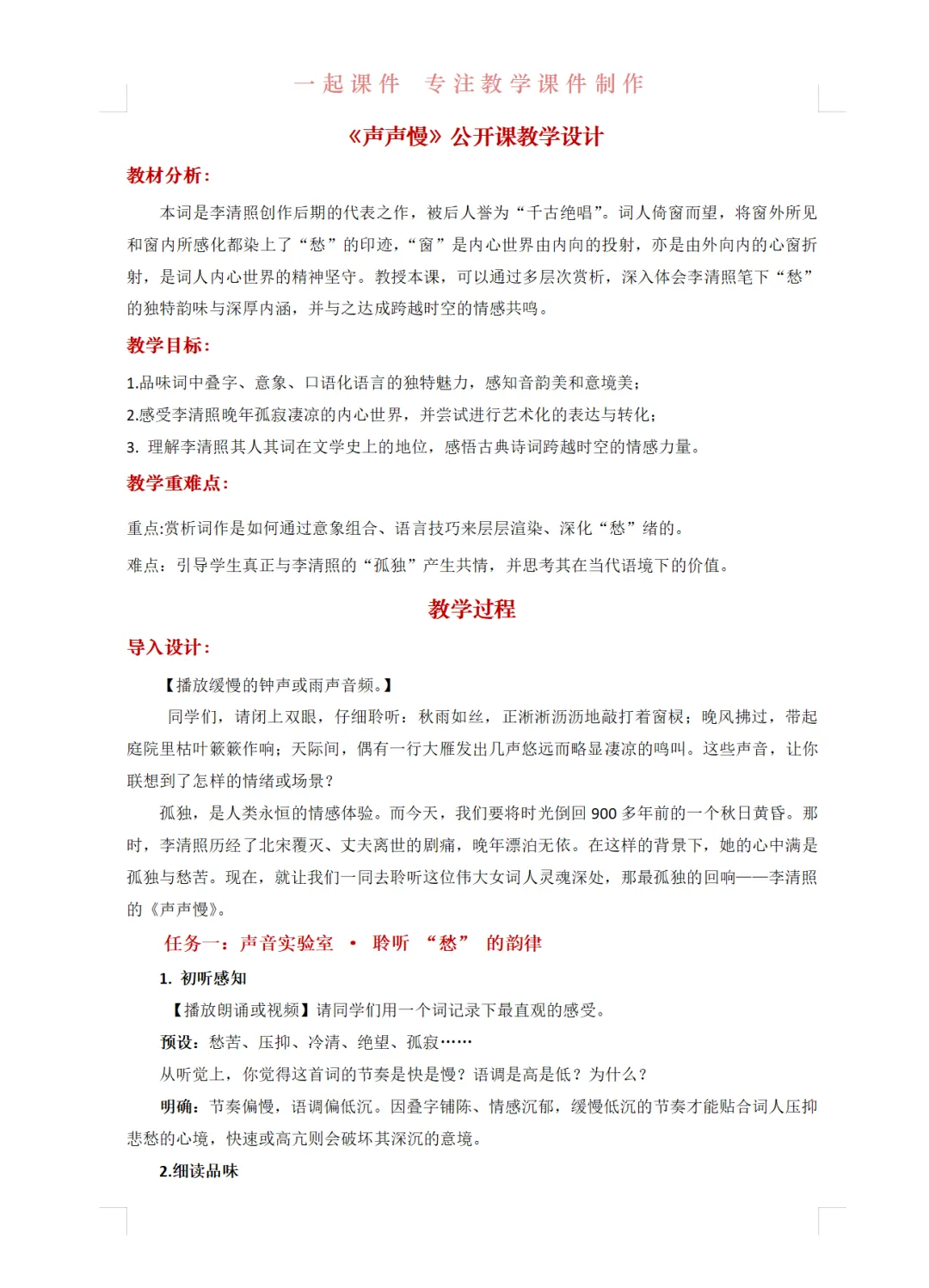 【AI精品公开课】|《声声慢》:课件+教学设计