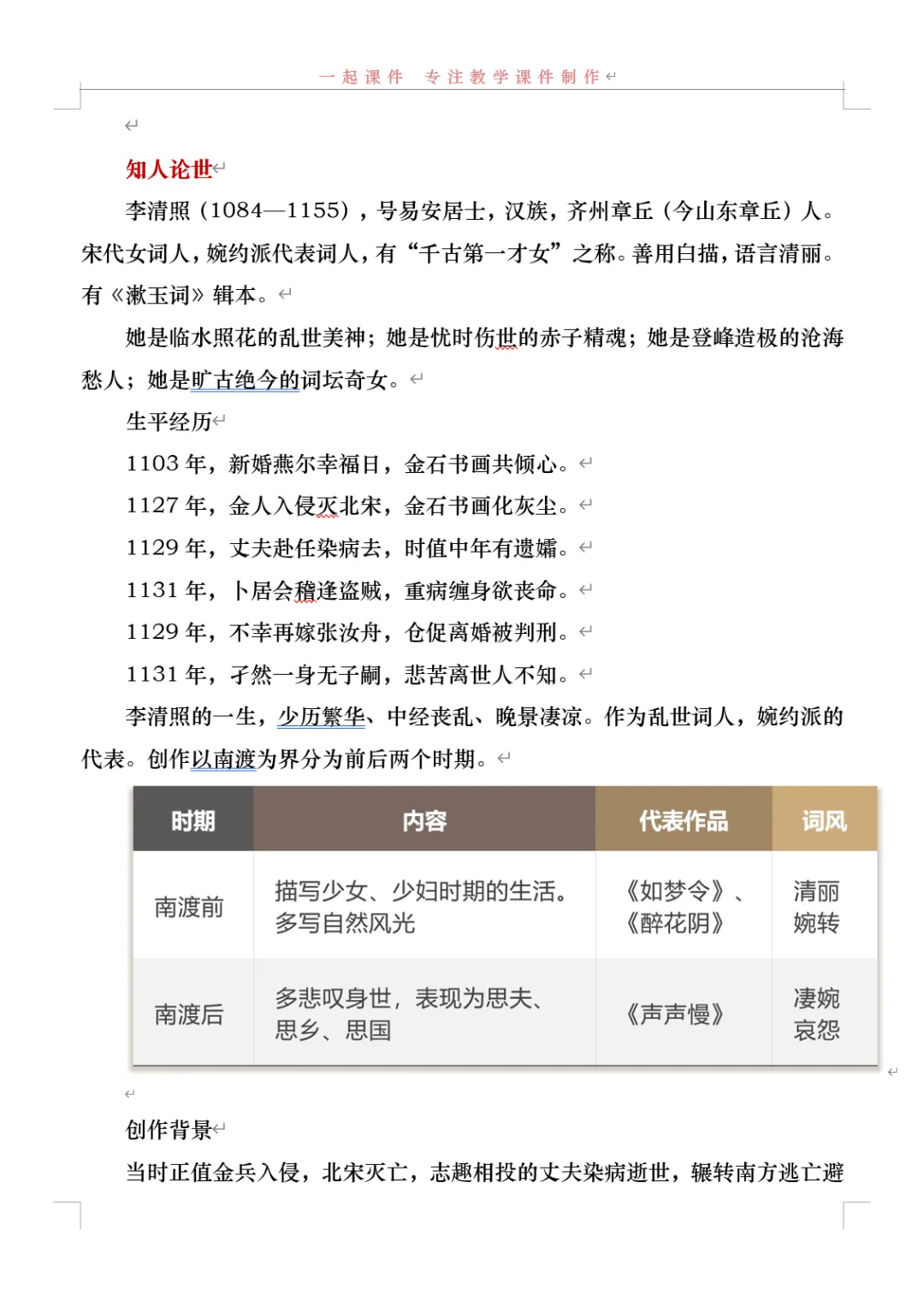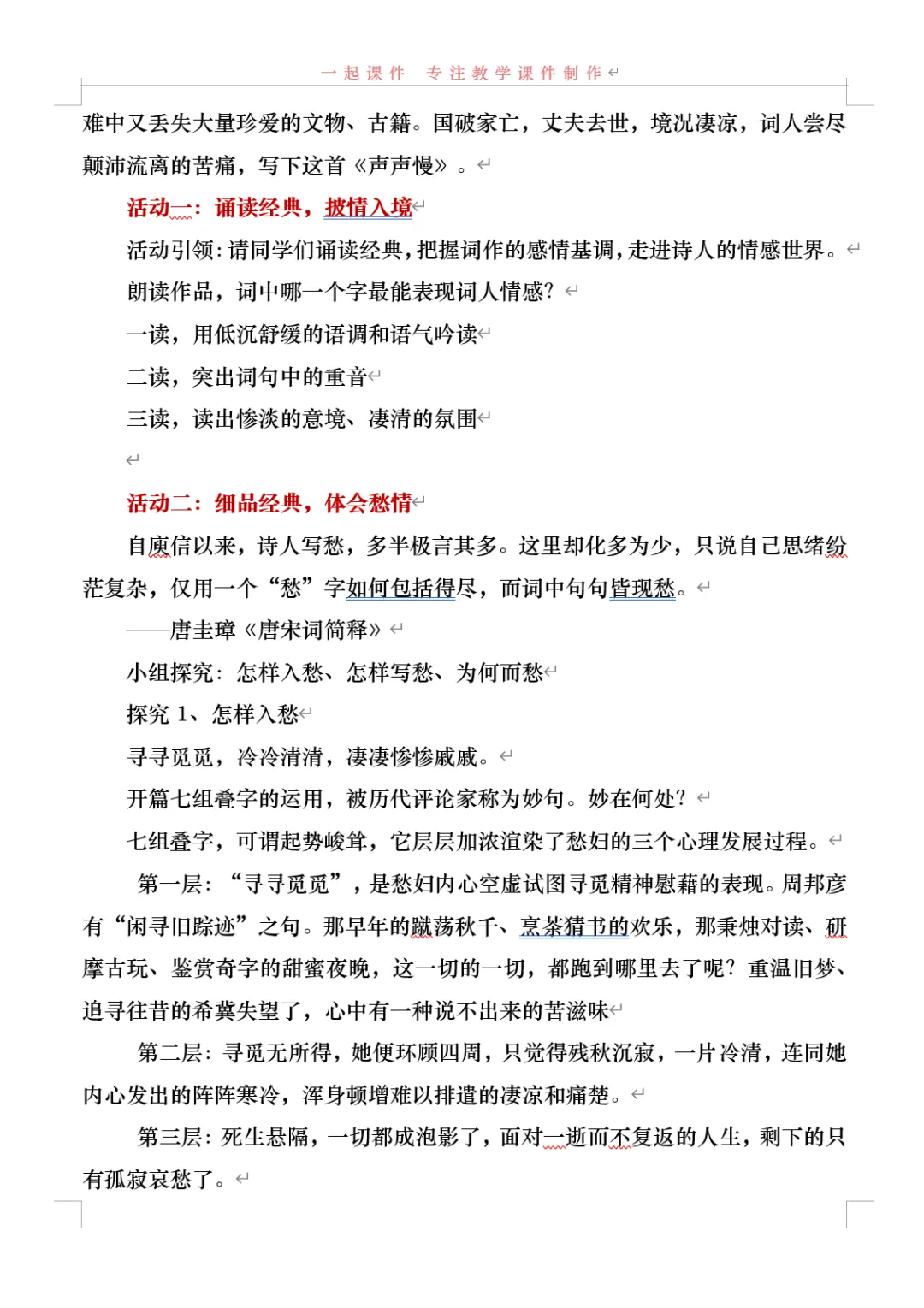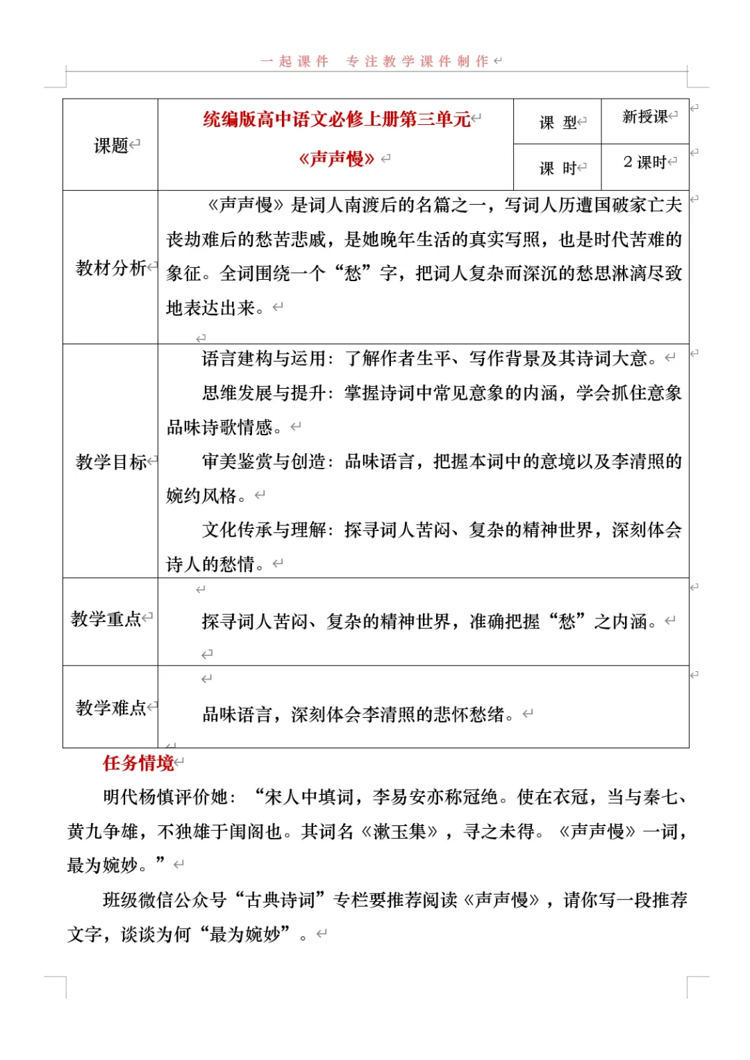 【一起语文必修上】|《声声慢》:课件+教学设计