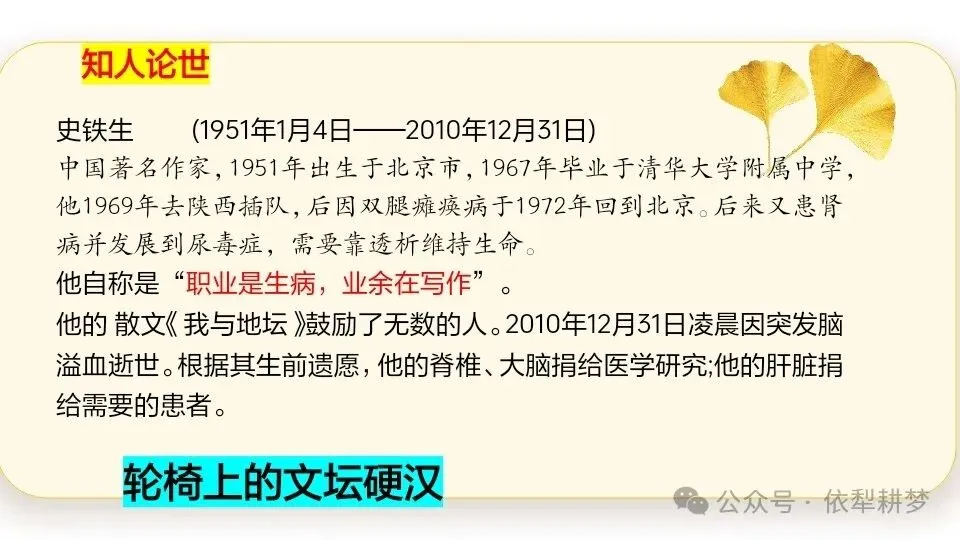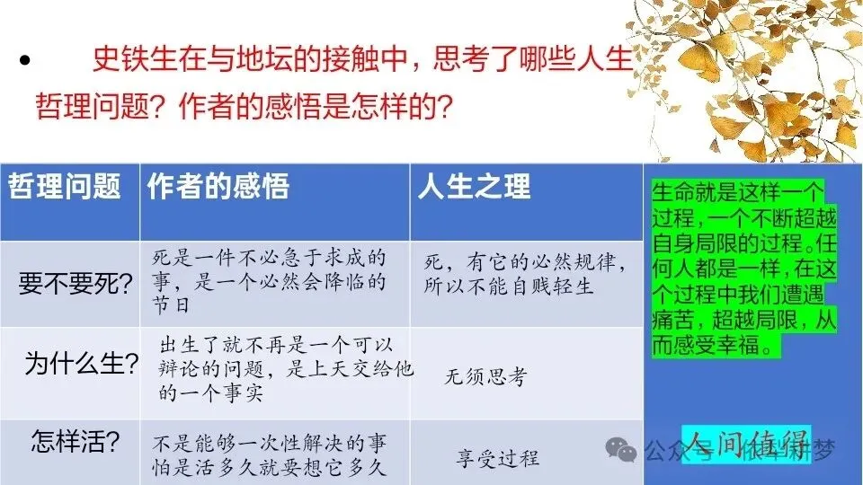 >叩问生命,人间值得——《我与地坛》上课课件