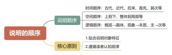 明确:说明顺序——有助于充分表现事物或事理本身的特征,让知识有条理,也符合人们认识事物或事理的规律。