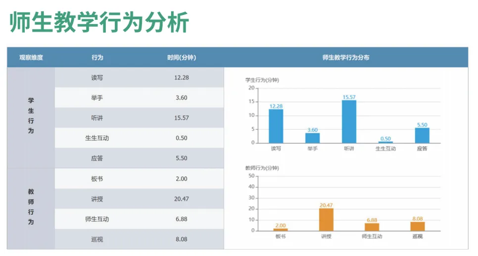 借助“课堂行为分布图”标出每种行为发生的具体时序来分析学生是否在这个时间点充分参与课堂学习;