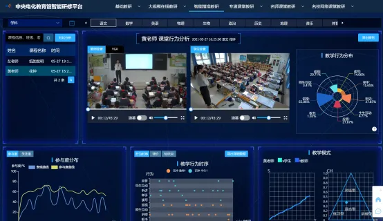智慧教育平台融入了OCR文字识别、语音辨识、面部识别以及体态识别等尖端AI功能的智能录制系统,能够实时捕捉并录制整个课堂场景,常态化记录课堂参与度、师生互动行为比例、具体行为时序等真实课堂数据,可就9种师生教学行为深入解析,对9个维度的学情展开详尽剖析,并自动生成3种类型的精准数据分析报告。