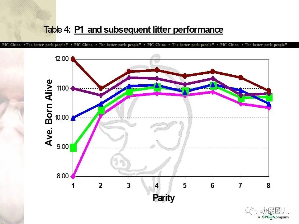 8 杂交优势利用最充分:PIC五元杂交体系使杂交优势利用更充分,比三元杂交多利用了祖代杂交优势和终端公猪的父本杂交优势。