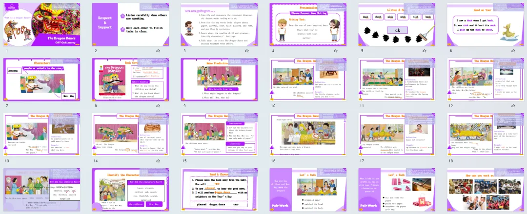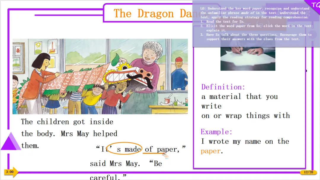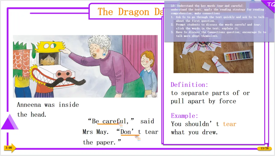 老师或家长直接对着课件跟孩子讲就可以,从话题引入到整个绘本的详细讲解、互动和练习,甚至每个页面用时多少,都有详细的规划,是可以拿来就用的宝贝。