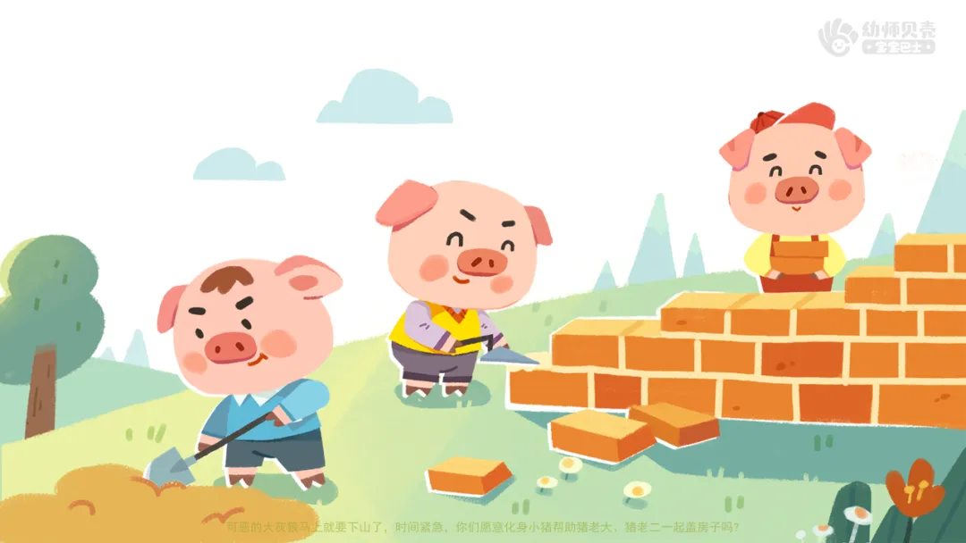 ——可恶的大灰狼马上就要下山了,时间紧急,你们愿意化身小猪帮助猪老大、猪老二一起盖房子吗?