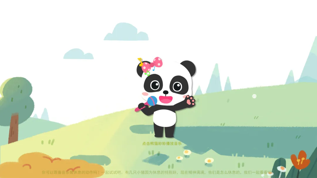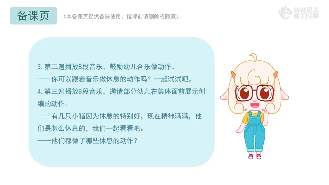 l感受B段音乐缓慢的旋律,用肢体动作表现小猪休息的情境。
