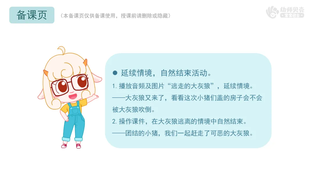2.操作课件,在大灰狼逃离的情境中自然结束。