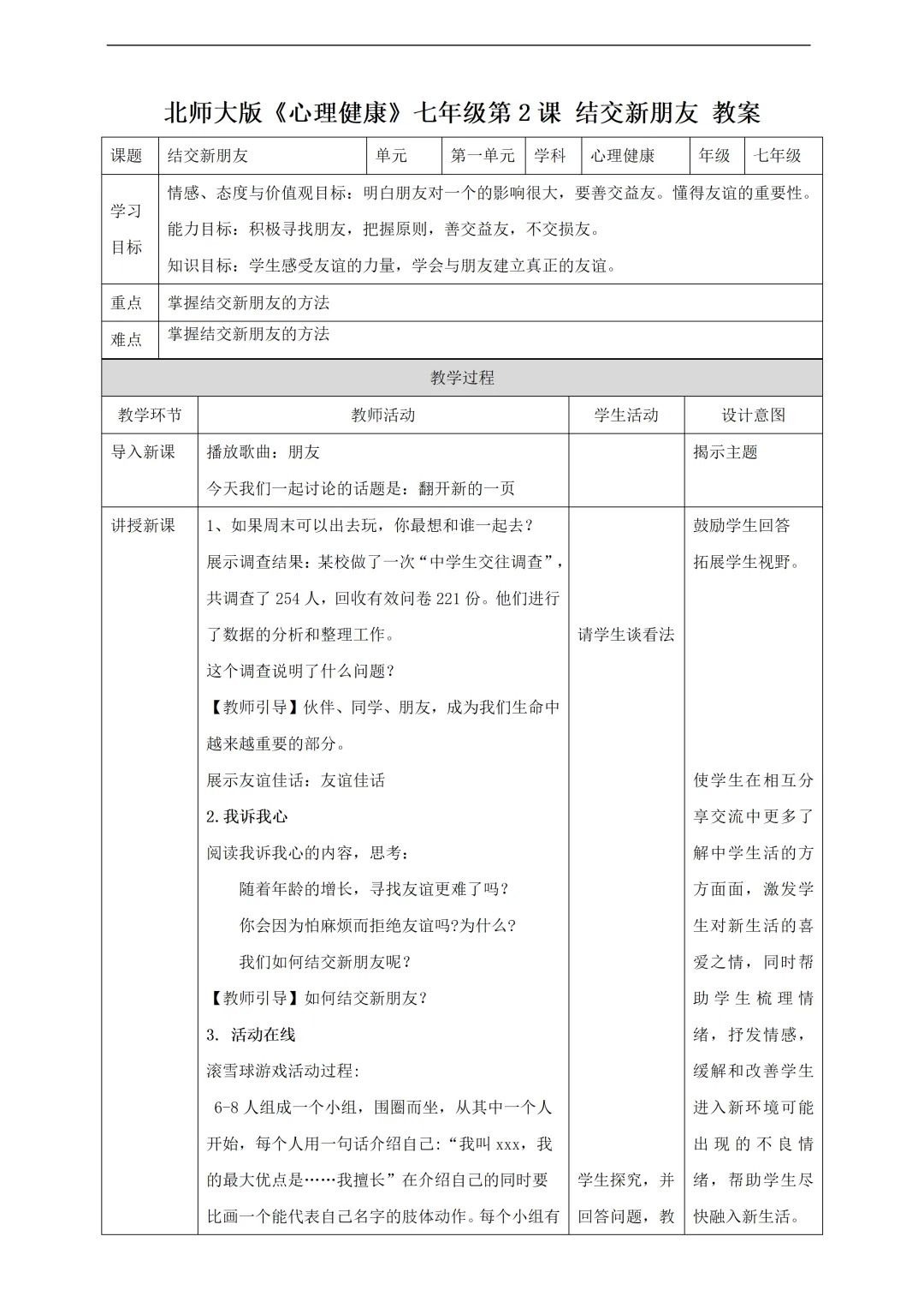 初中心理健康七年级全一册 教案+课件PPT(北师大版),可下载打印!