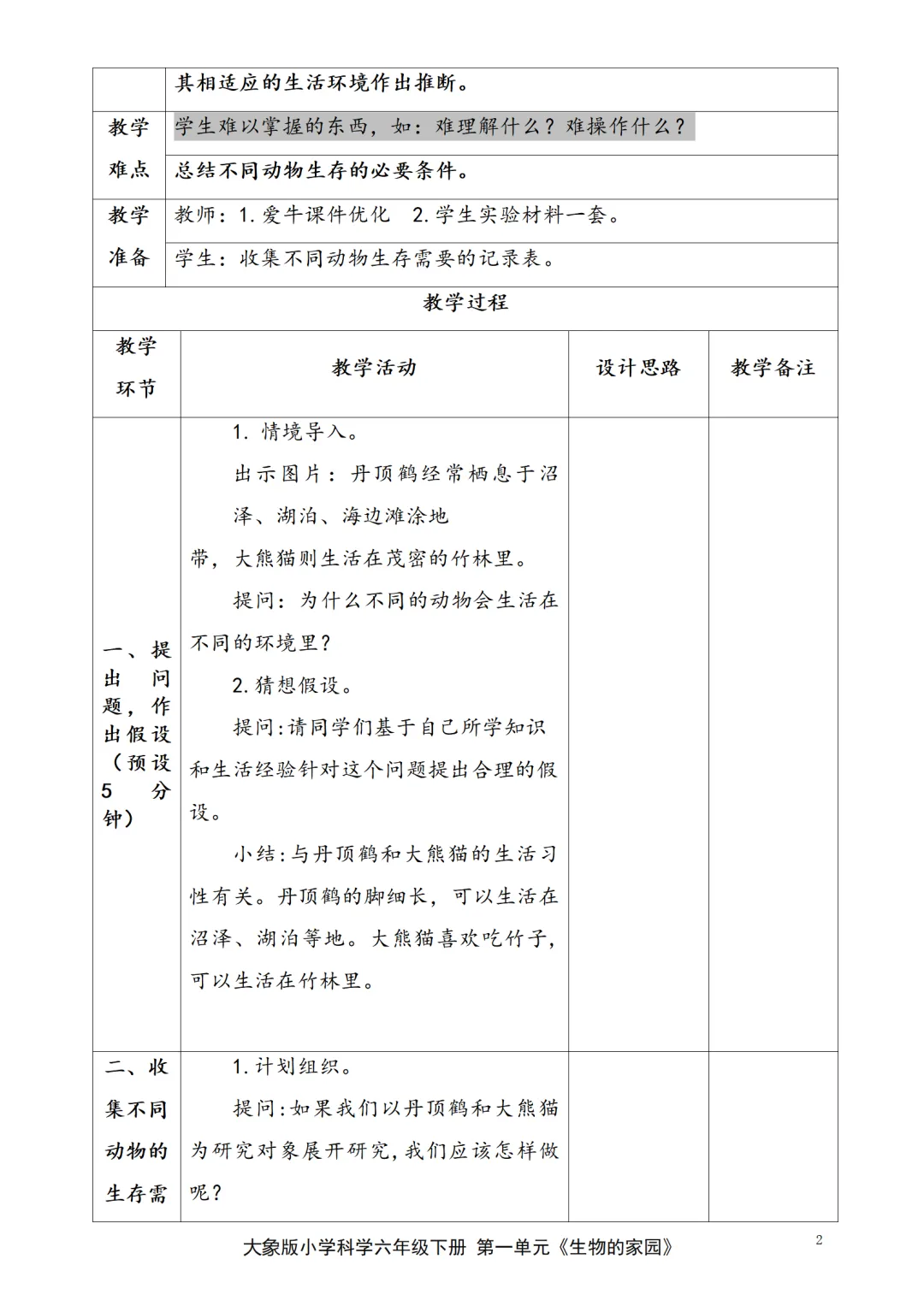 大象版《科学》六年级下册核心素养教案+ppt课件,可下载!