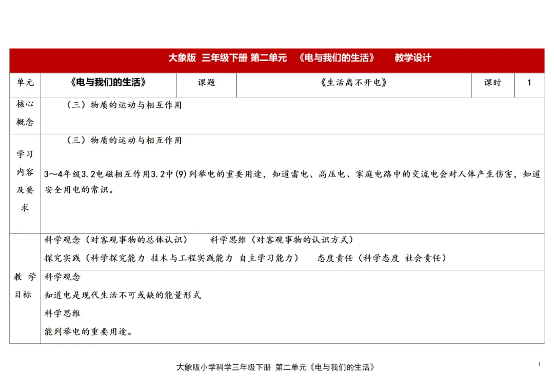 大象版《科学》一年级下册核心素养教案+精品课件ppt,可下载!