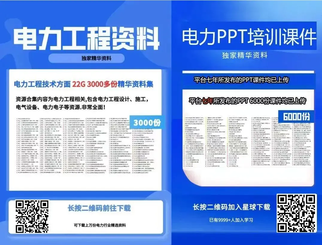 懂得分享,收获更多精彩回顾1.新版电网电力设备安装工程造价培训教材 2.最新典型实例分析变压器、GIS、配电装置等常见问题知识汇总 3.电力电缆试验规程培训 4.最新版 电气装置安装工程盘、柜及二次回路接线施工及验收规范 5.电力系统调度自动化主站系统培训教材戳“阅读原文”,加入我们vip电力资料库!