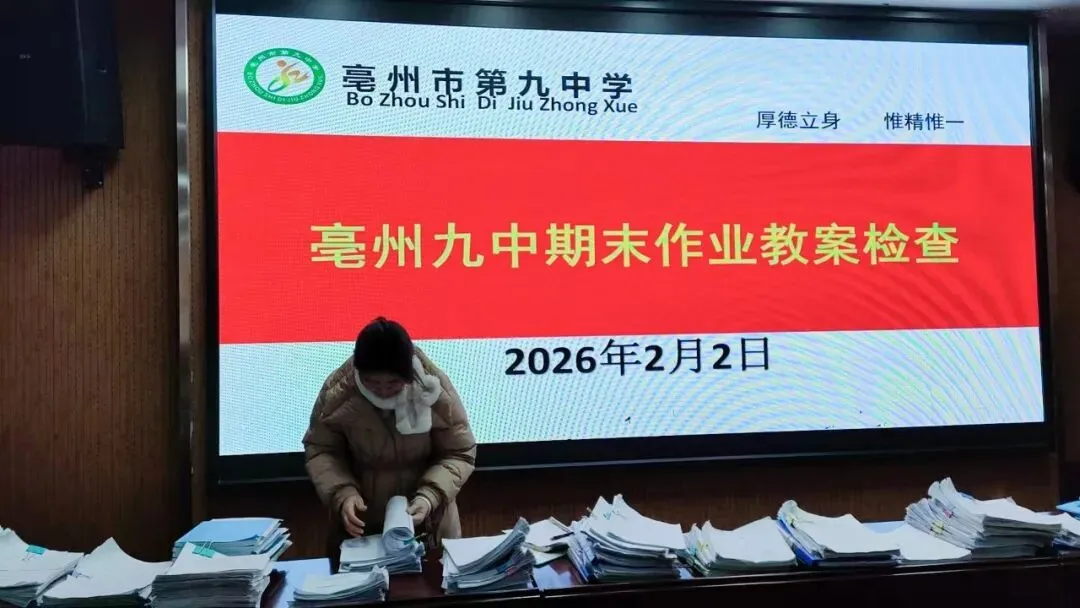 近日,亳州九中开展期末作业教案专项检查,各年级作业设计新颖精巧、教案撰写规范高质,以扎实的教学常规落实成效,赢得检查组成员的一致好评。
