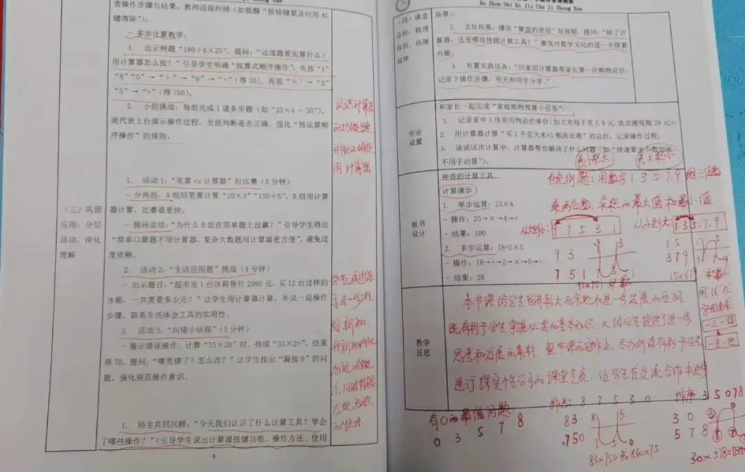 教案检查中,教师们的教案装订整齐、书写规范,充分彰显严谨教学态度。教案内容完整、目标明确、过程设计合理,课后反思深刻,不少还附有彩色便签,记录课堂即时问题与调整思路,既符合规范要求,更体现出对学情的精准把握和教学内容的深度思考。