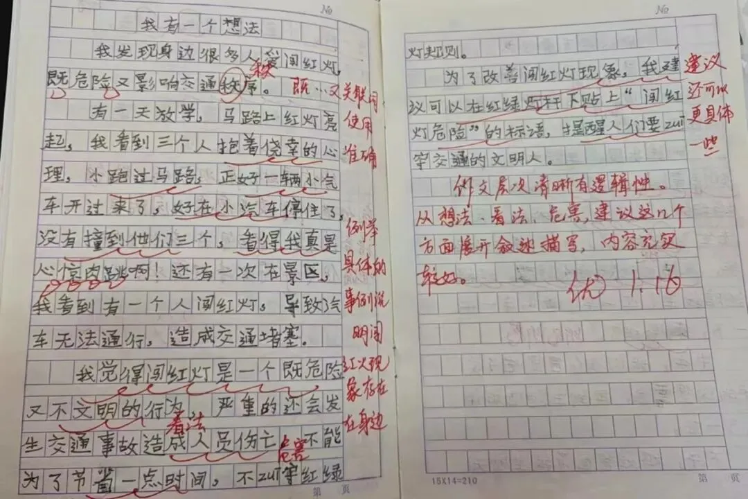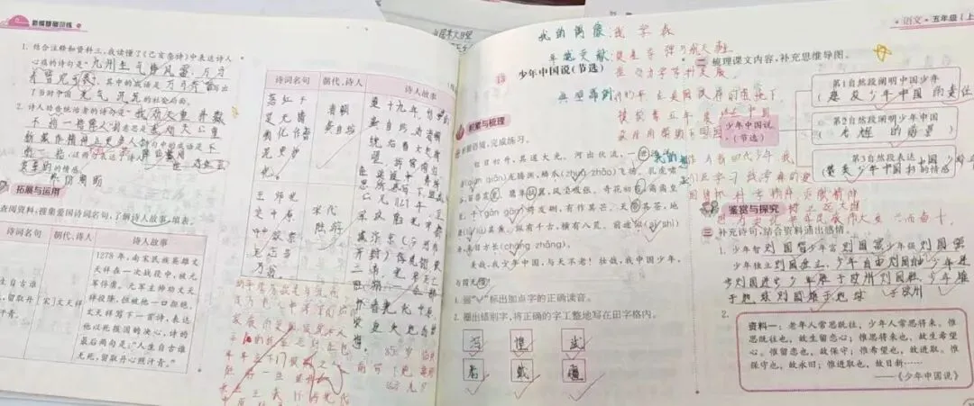 作业批改是本次检查重点,教师批注细致入微、点评精准。作文本上既有篇章结构的宏观评价,也有精彩句子的标注与眉批建议;数学作业本上,错题旁不仅附有正确答案,更有思路引导和类似题型推荐。