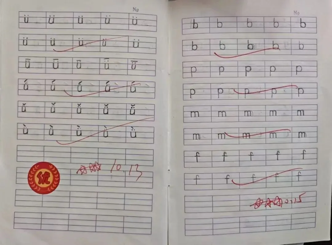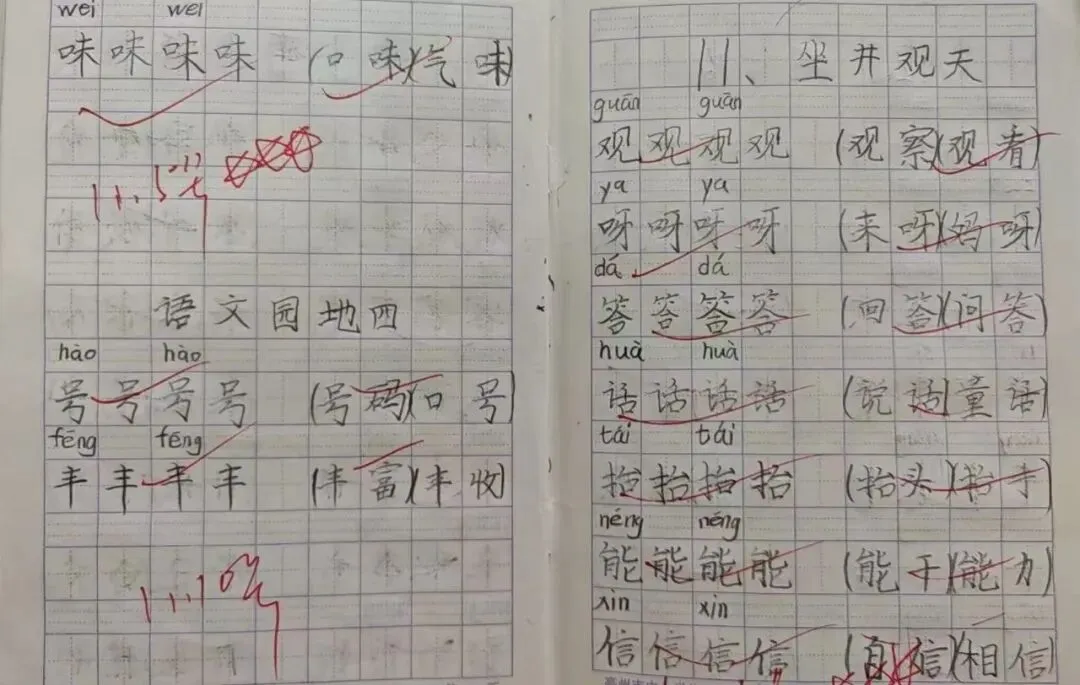 作业设计巧思频现,成为检查中的一大亮点。一年级“拼音王国”手抄报,学生用彩纸剪出拼音字母并配以图画,将抽象符号转化为具象作品,在动手操作中加深记忆、激发兴趣;数学作业中,学生利用纸板、瓶盖等材料制作可拨动钟表模型,在实践中掌握钟面结构、理解时间概念;各年级语文手抄报以传统节日为主题,融合诗文、绘画与版面设计,兼顾趣味性、实用性与挑战性,全面展现学生综合素养。